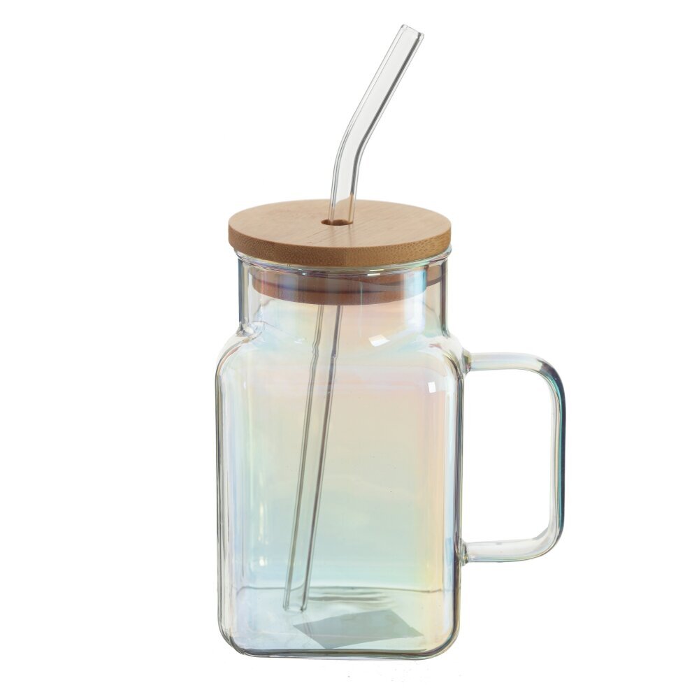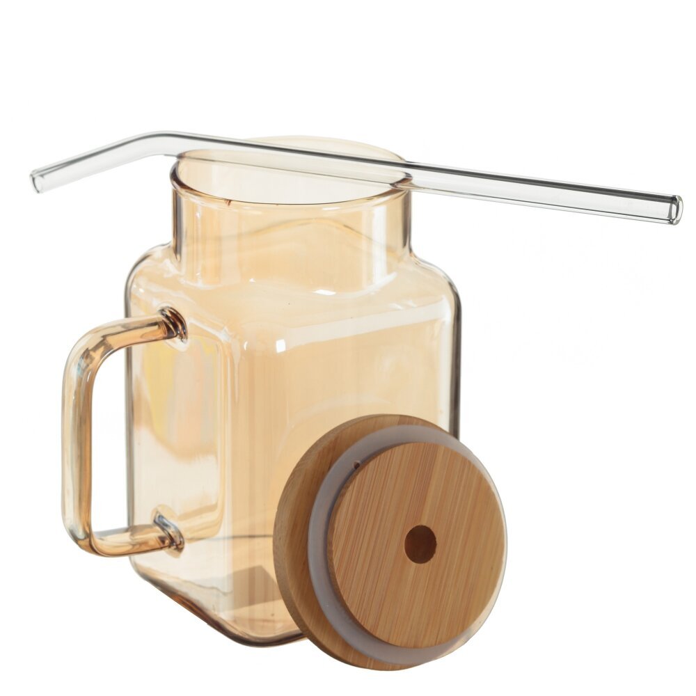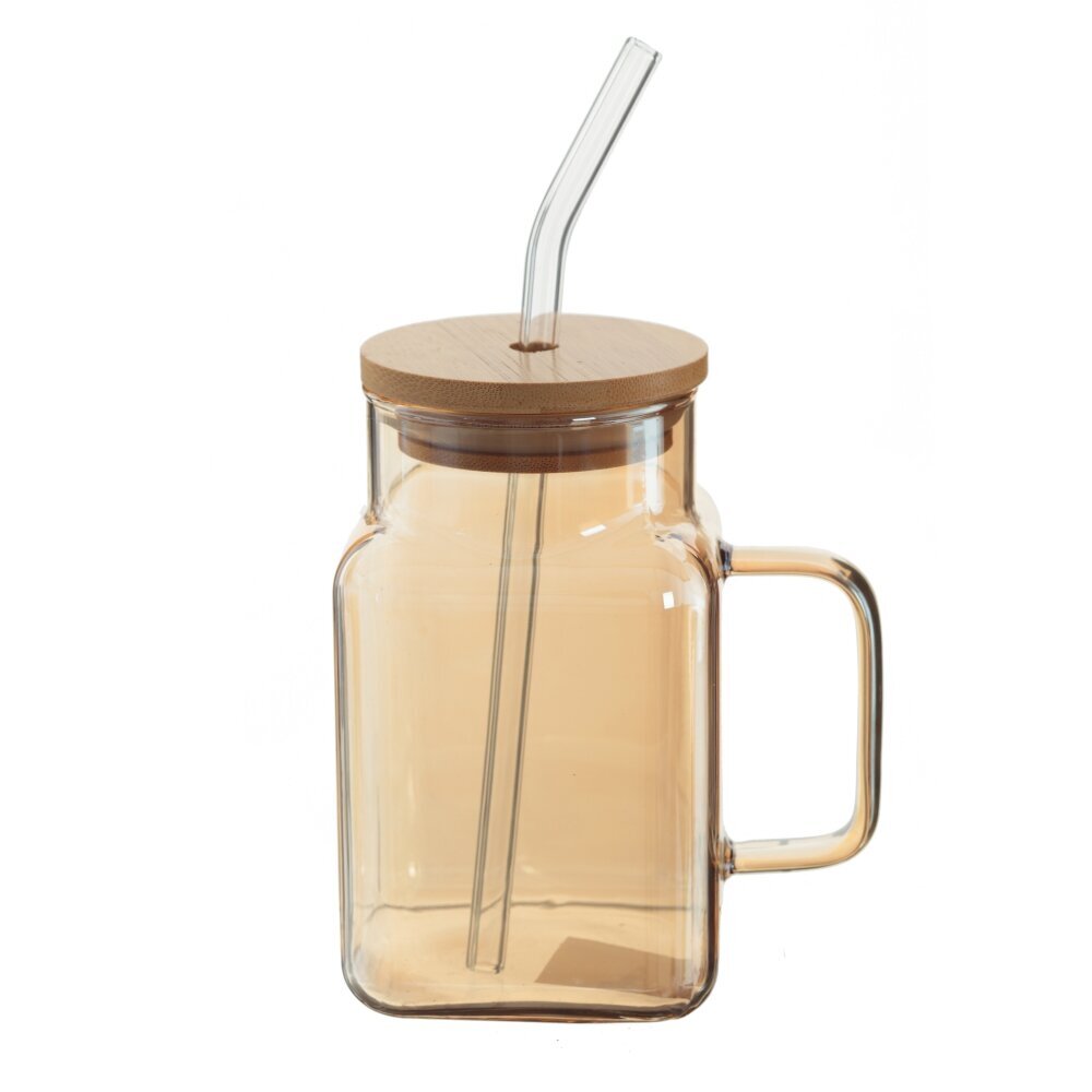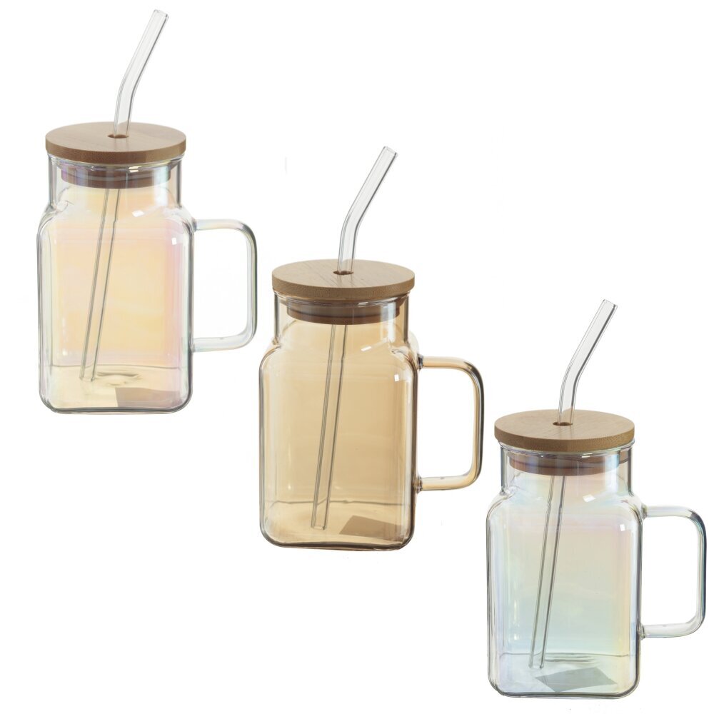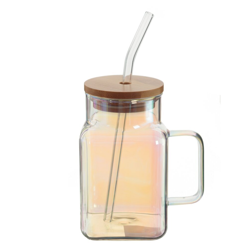 Кружка с крышкой и трубочкой, 650 мл, L11 W8 H13,5 см, 3в.