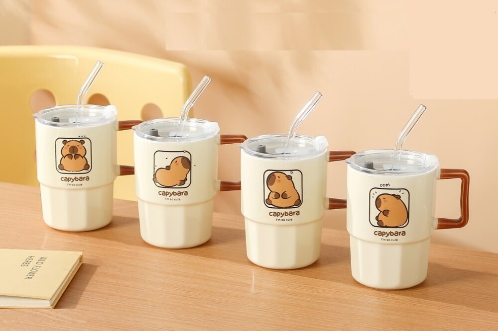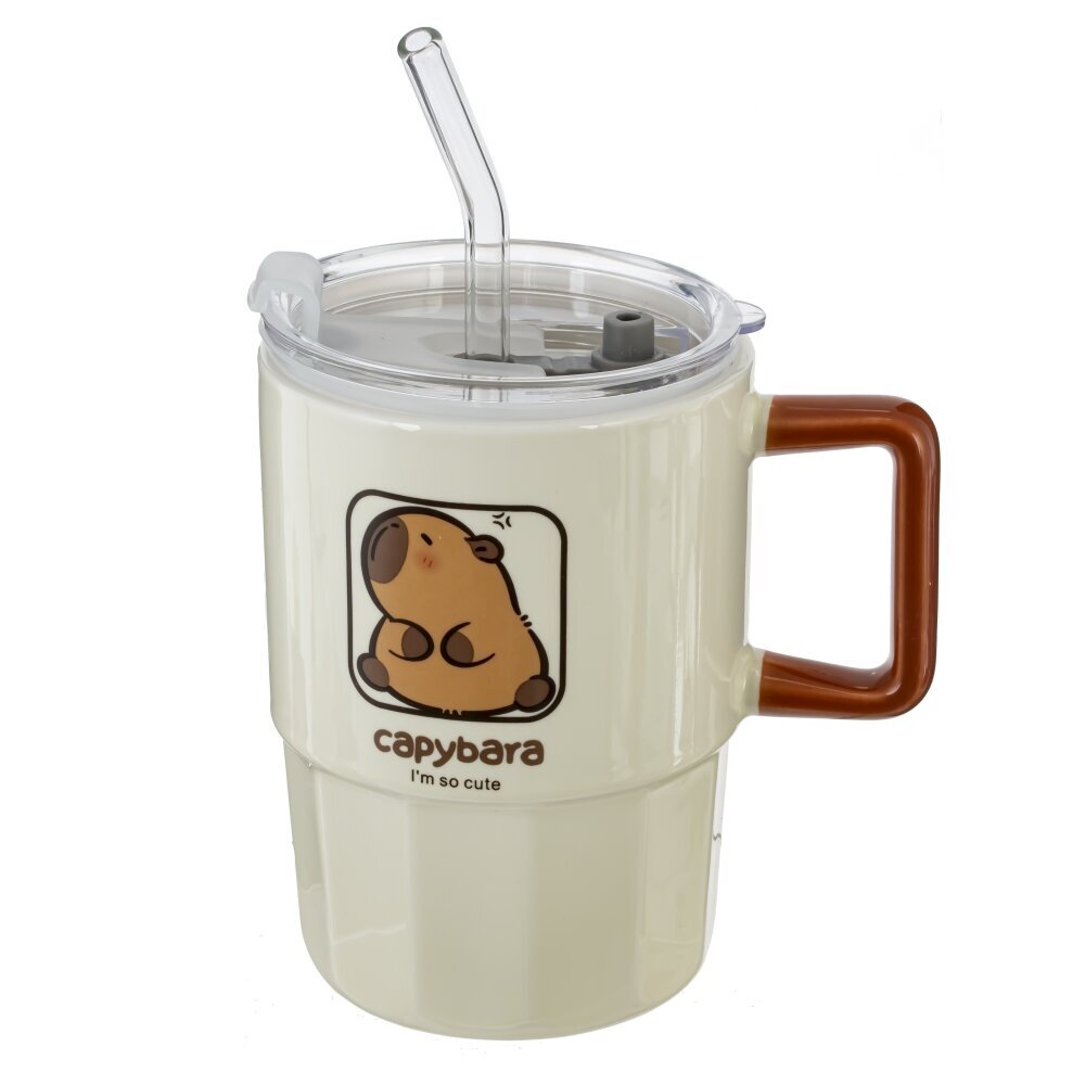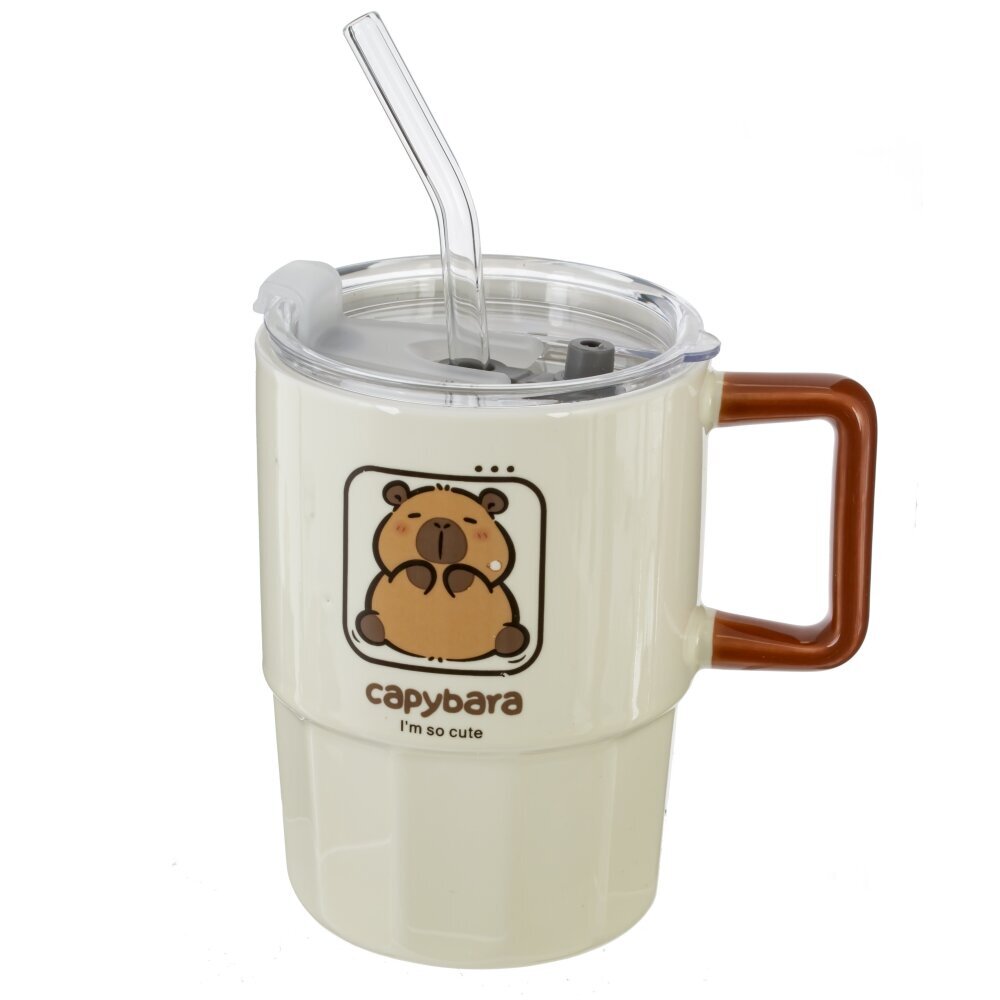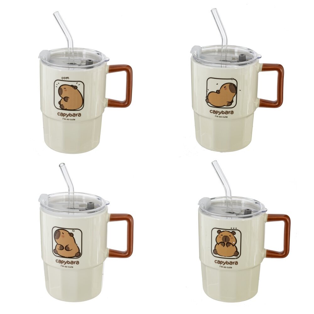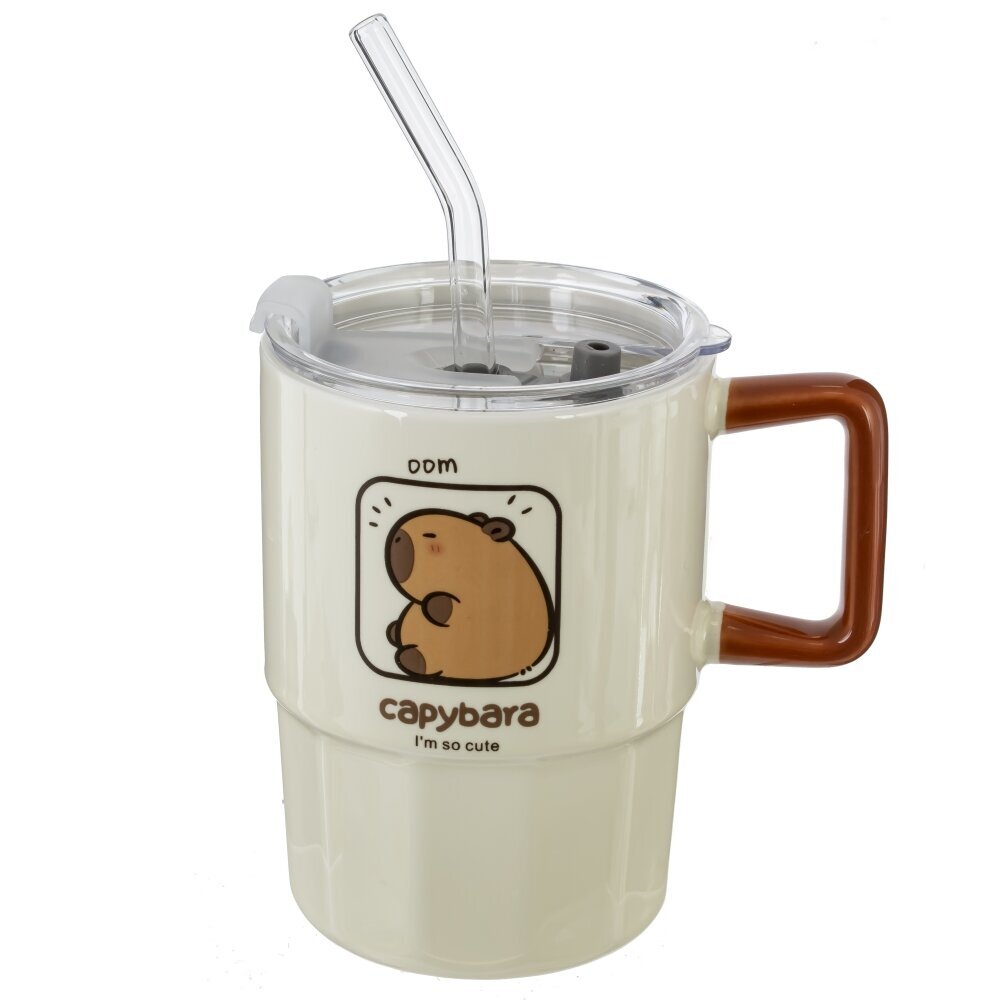 Кружка с крышкой и трубочкой, L8,8 W8,8 H12,2 см, дизайн микс