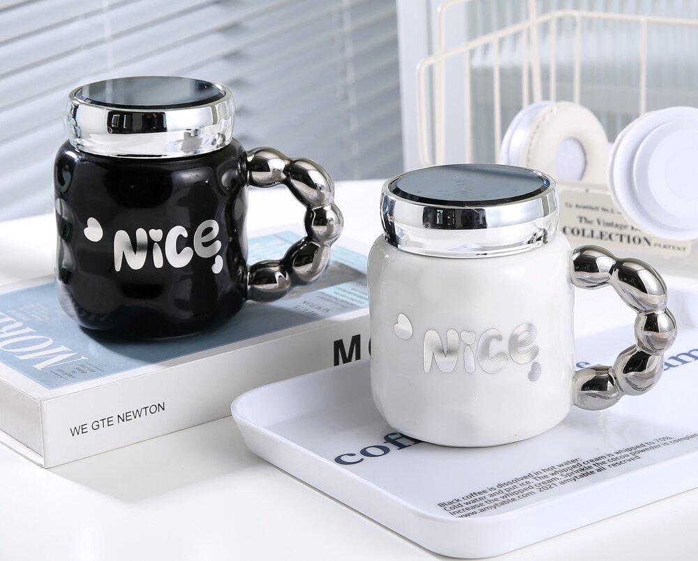 Кружка с крышкой, 350 мл, L12 W8 H12 см, дизайн микс