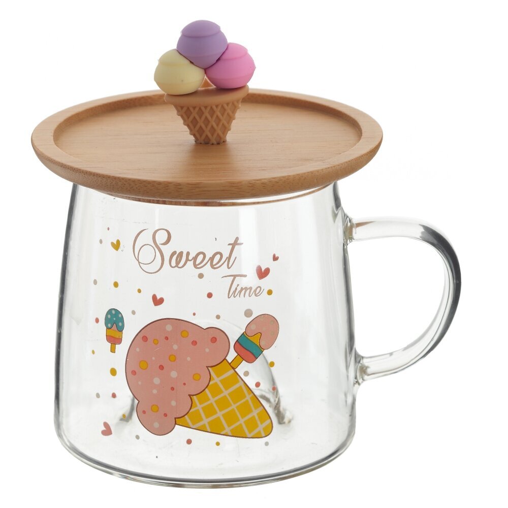 Кружка с крышкой, 350 мл, L12 W8 H12 см, дизайн микс