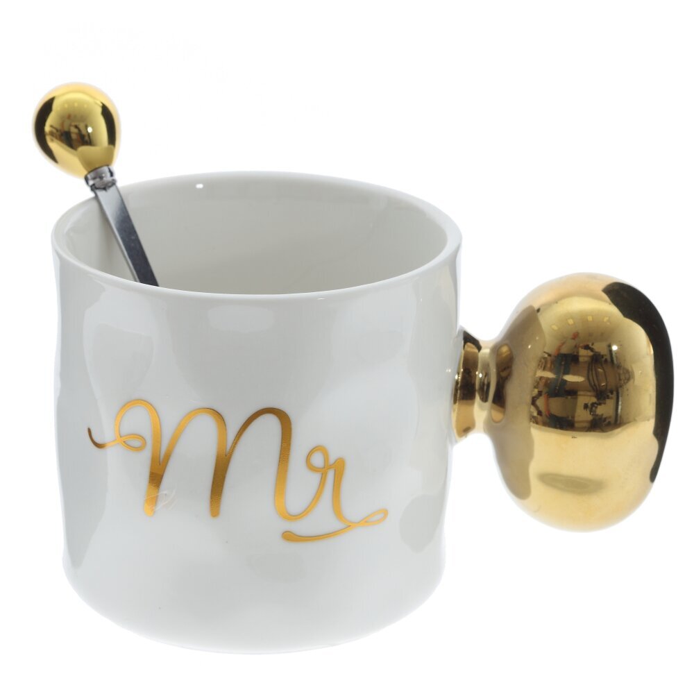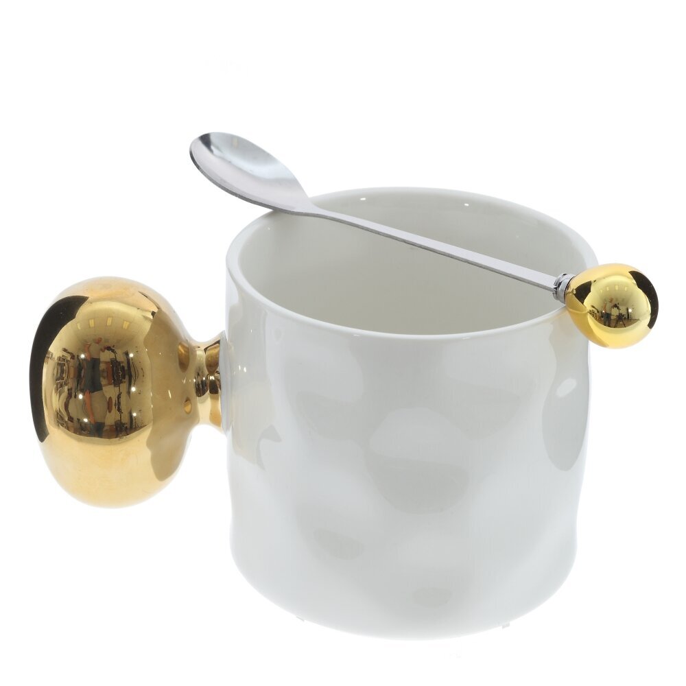 Кружка с ложкой, L9 W9 H8,5 см, дизайн микс.