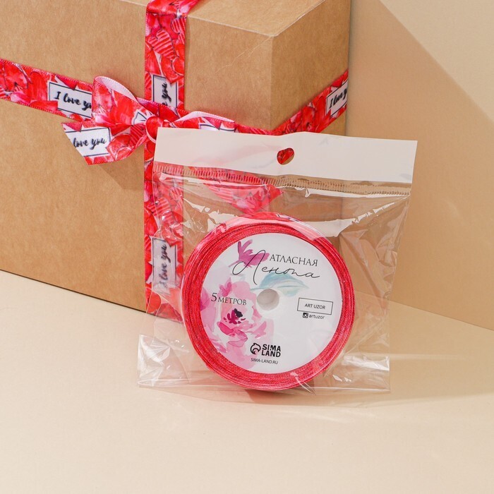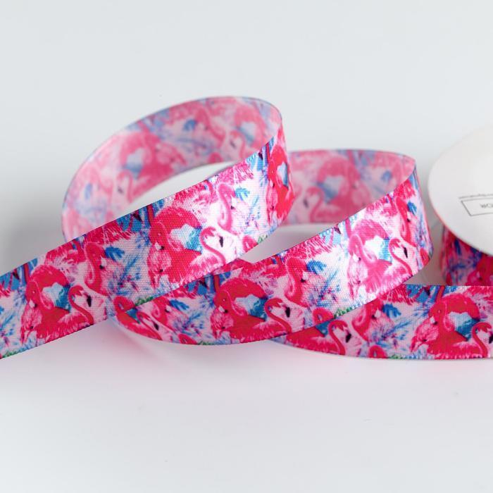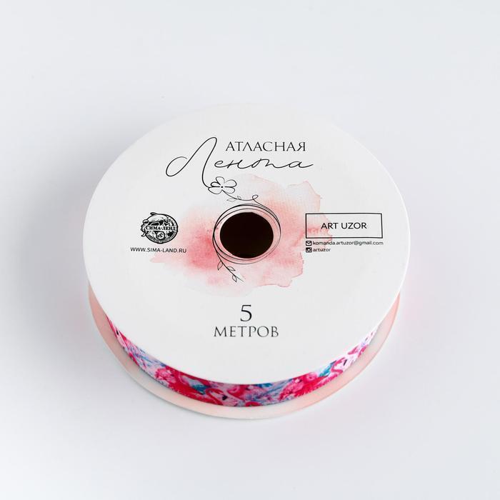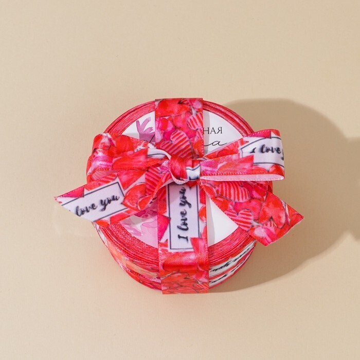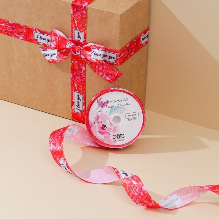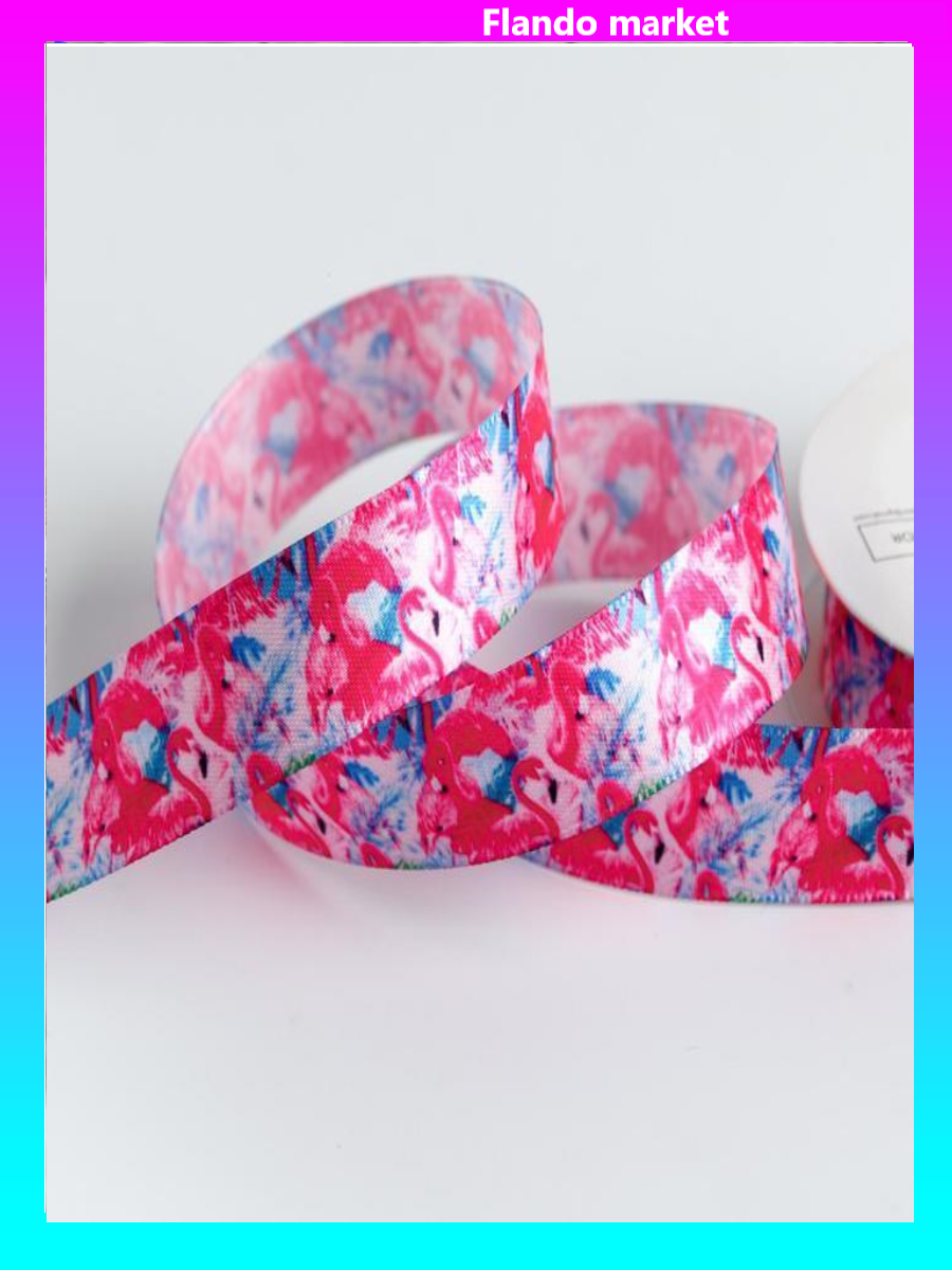 !09 Набор лент для упаковки подарков: Лента атласная «Люблю», 2 см × 5 м + Лента атласная «Фламинго», 2 см × 5 м.