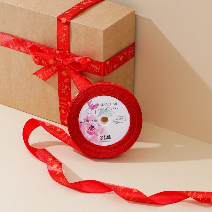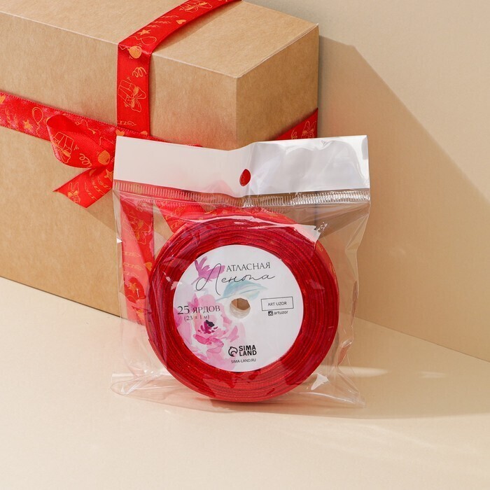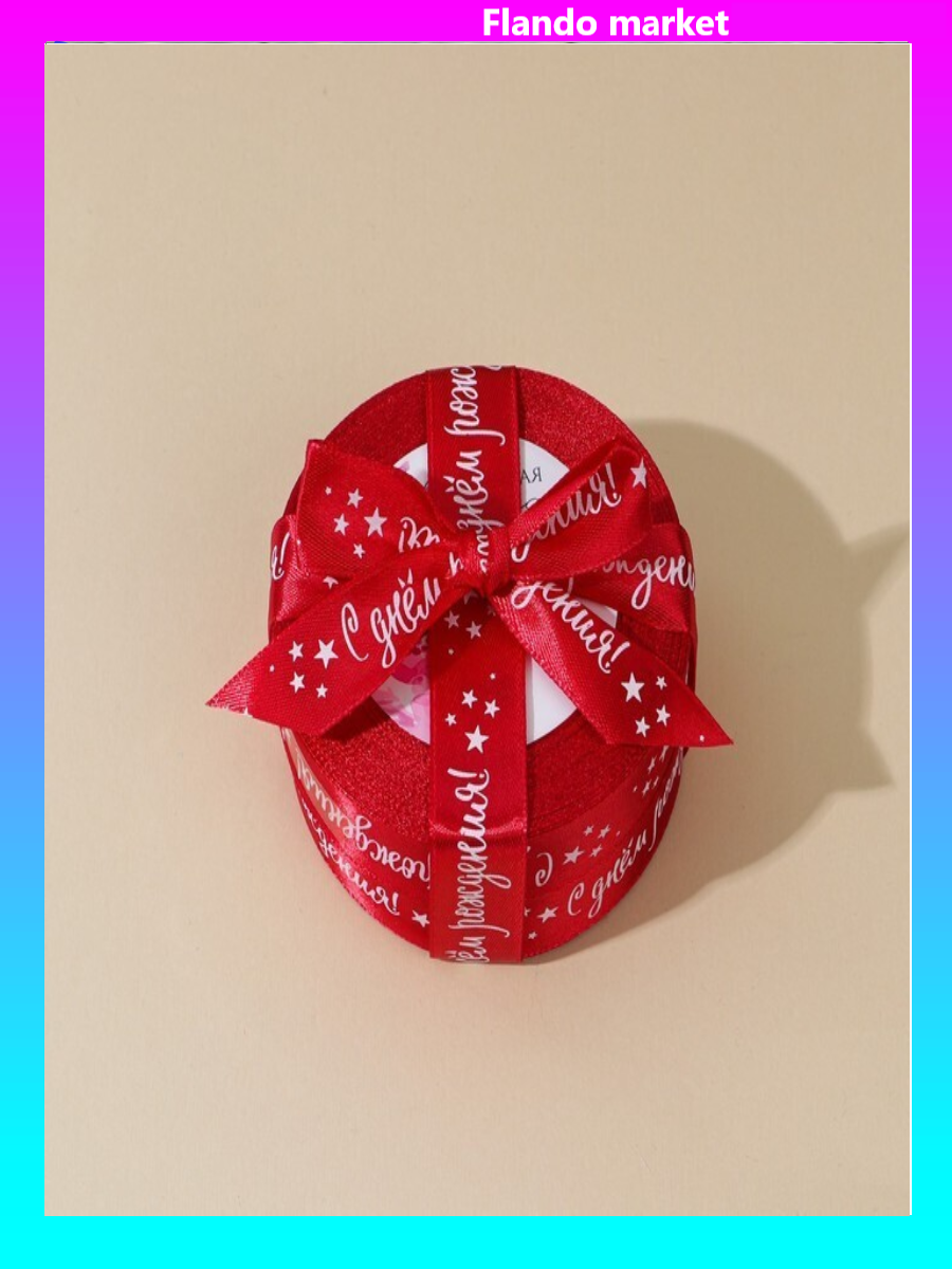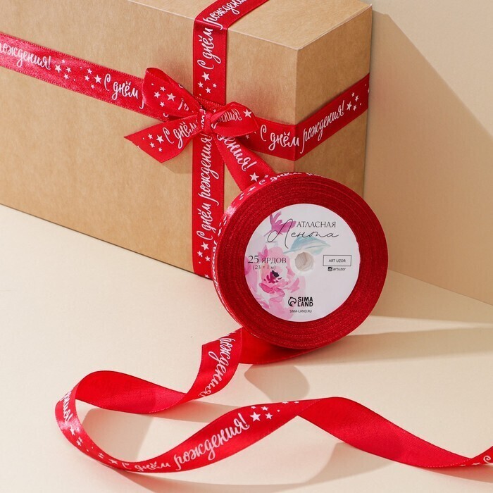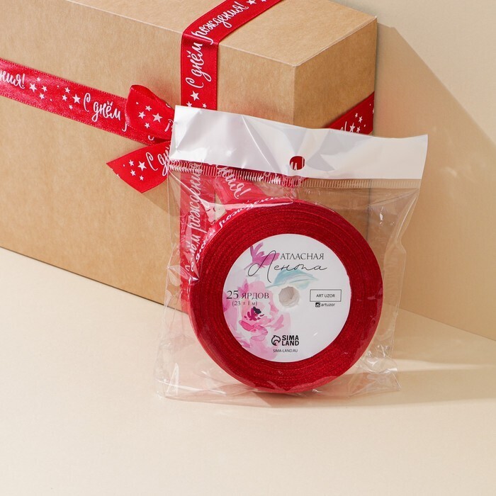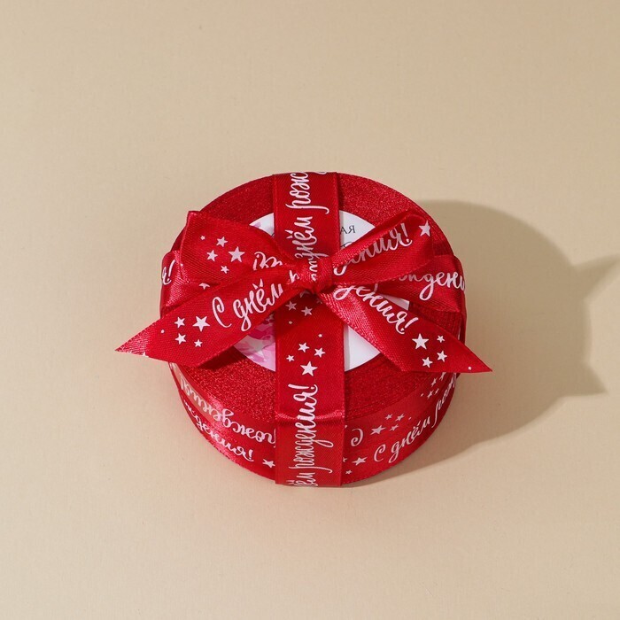 !09 Набор лент для упаковки подарков:Лента атласная «С днём рождения», красная, 2 см × 22,5 м. + Лента атласная «С праздником!», красная, 2 см x 22.5 м.
