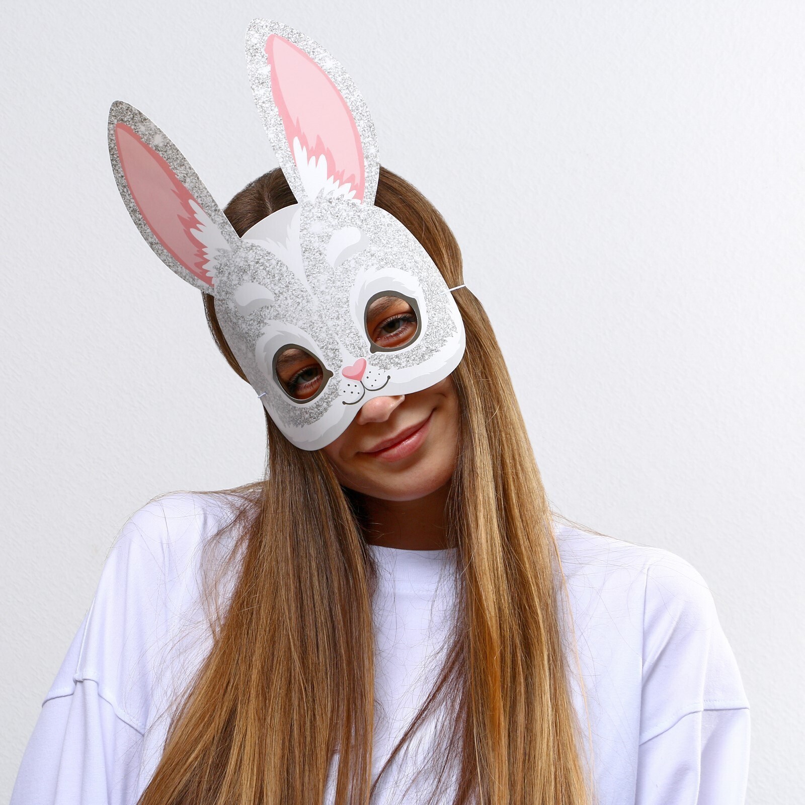 !09 Набор из 3-х масок на резинке:«Кролик с сердечком», 25,3 х 25,3 см., + «Кролик в блестках», 21,1 х 26 см. + «Кролик с морковкой» 30x30 см., 250 гр/кв.м