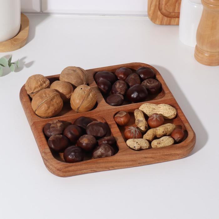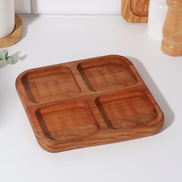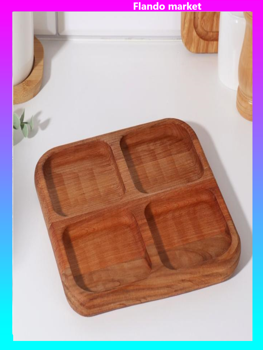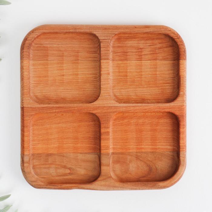 !09 Менажница квадратная, бук 4 отсека d=20 см
