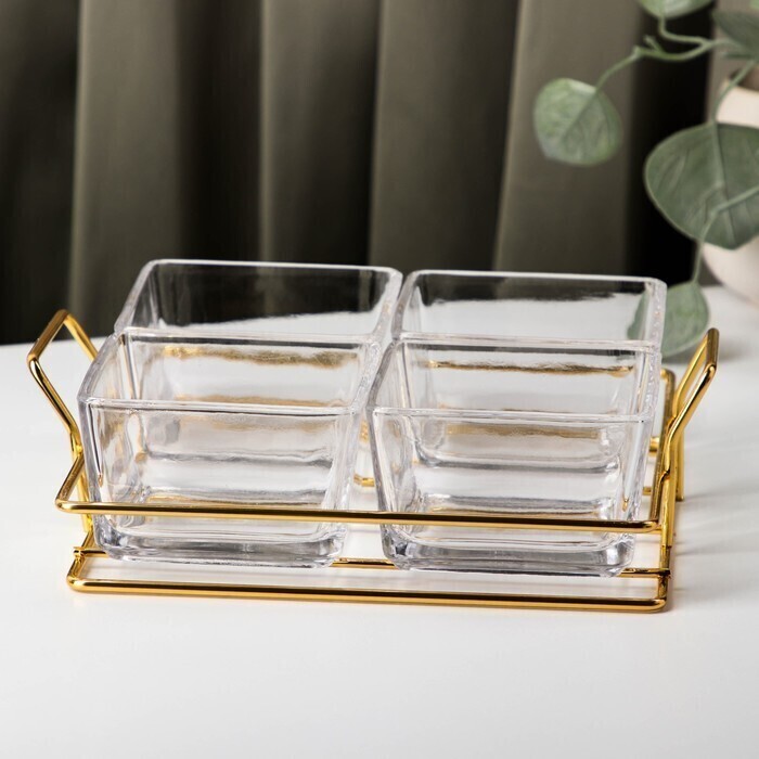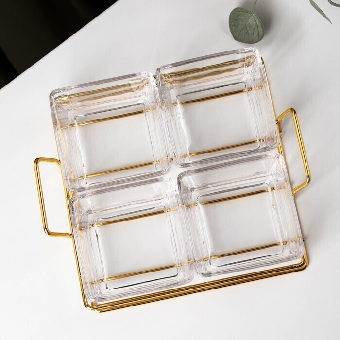 !09 Менажница стеклянная Magistro «Званый прием», 4 секции, 250 мл, 22,5×19×6 см