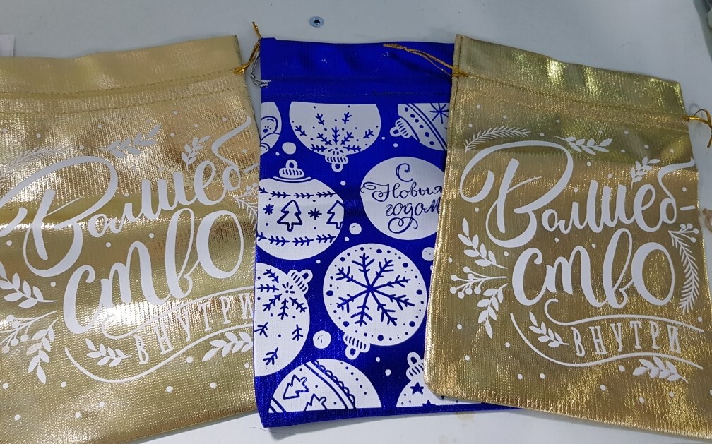 !09 Мешочек 3 штуки подарочный парча «С Новым годом», 16 × 24 см, дизайн микс