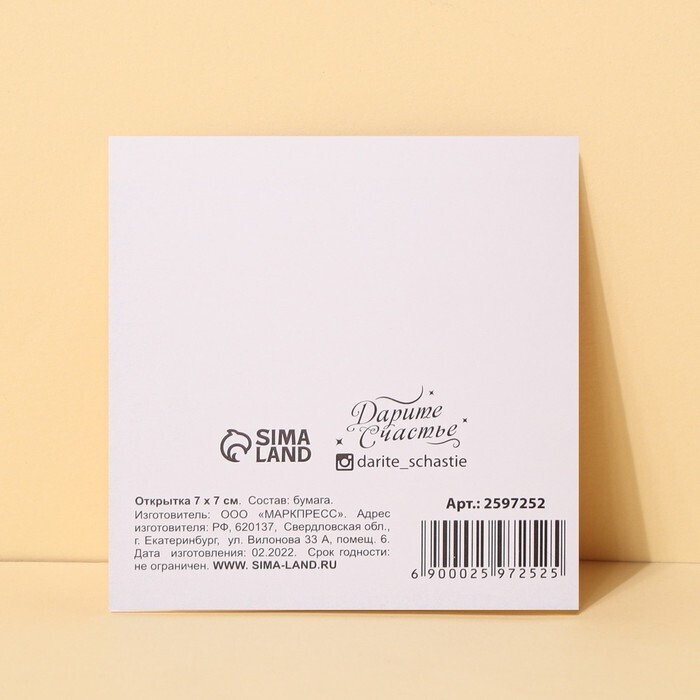 !09 Мини–открытка раскладывающая (набор 7 штук) «От всего сердца» 7 х 7 см.