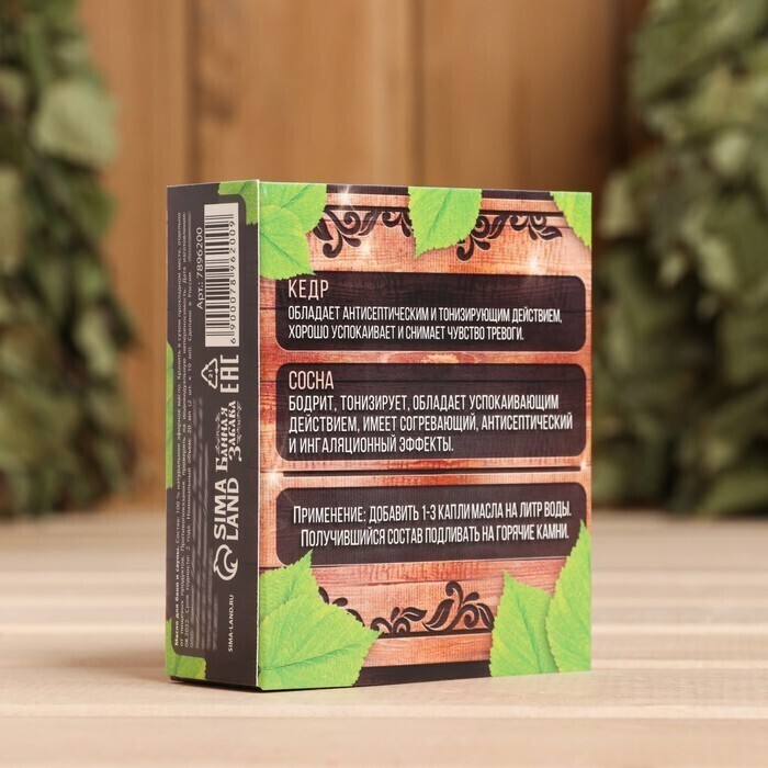 !09 Набор: 2 эфирных масла /10 мл/ "Лучшему банщику" кедр, сосна + Запарка фитосбор «Для улучшения сердечно-сосудистой системы» мята, пустырник, ромашка 30 г.
