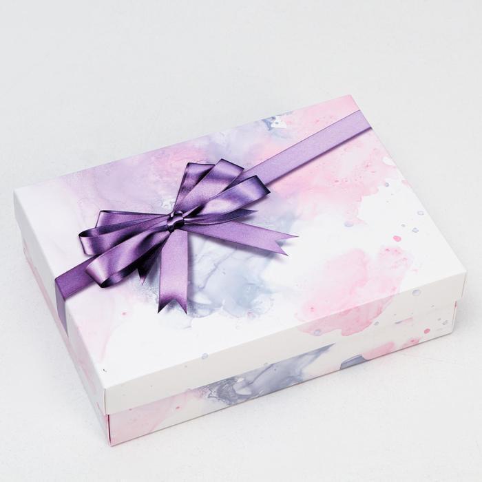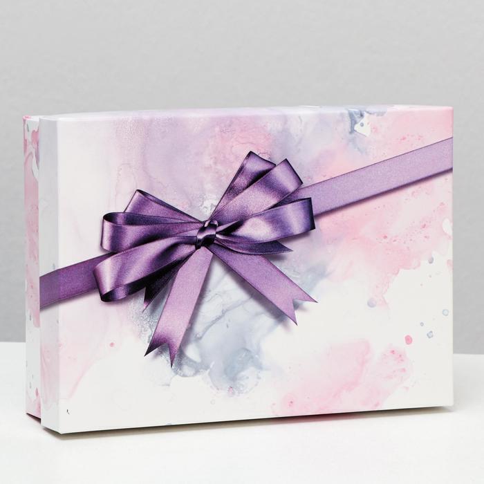 !09 Набор 4 штуки, Коробка подарочная «Бант», сиреневая, 21 х 15 х 5 см