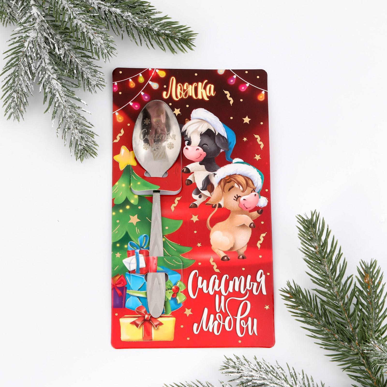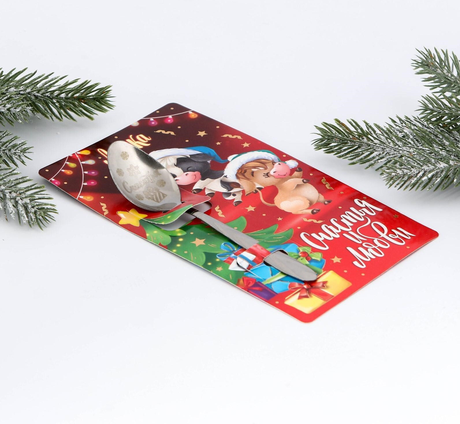 !09 НАБОР ИЗ 3-Х ШТУК - Ложка сувенирная на открытке «Счастья и любви»,10 х 18 см. (2 штуки) +Ложка сувенирная на открытке «Чудес в новом году», 10 х 18 см. (1 штука)