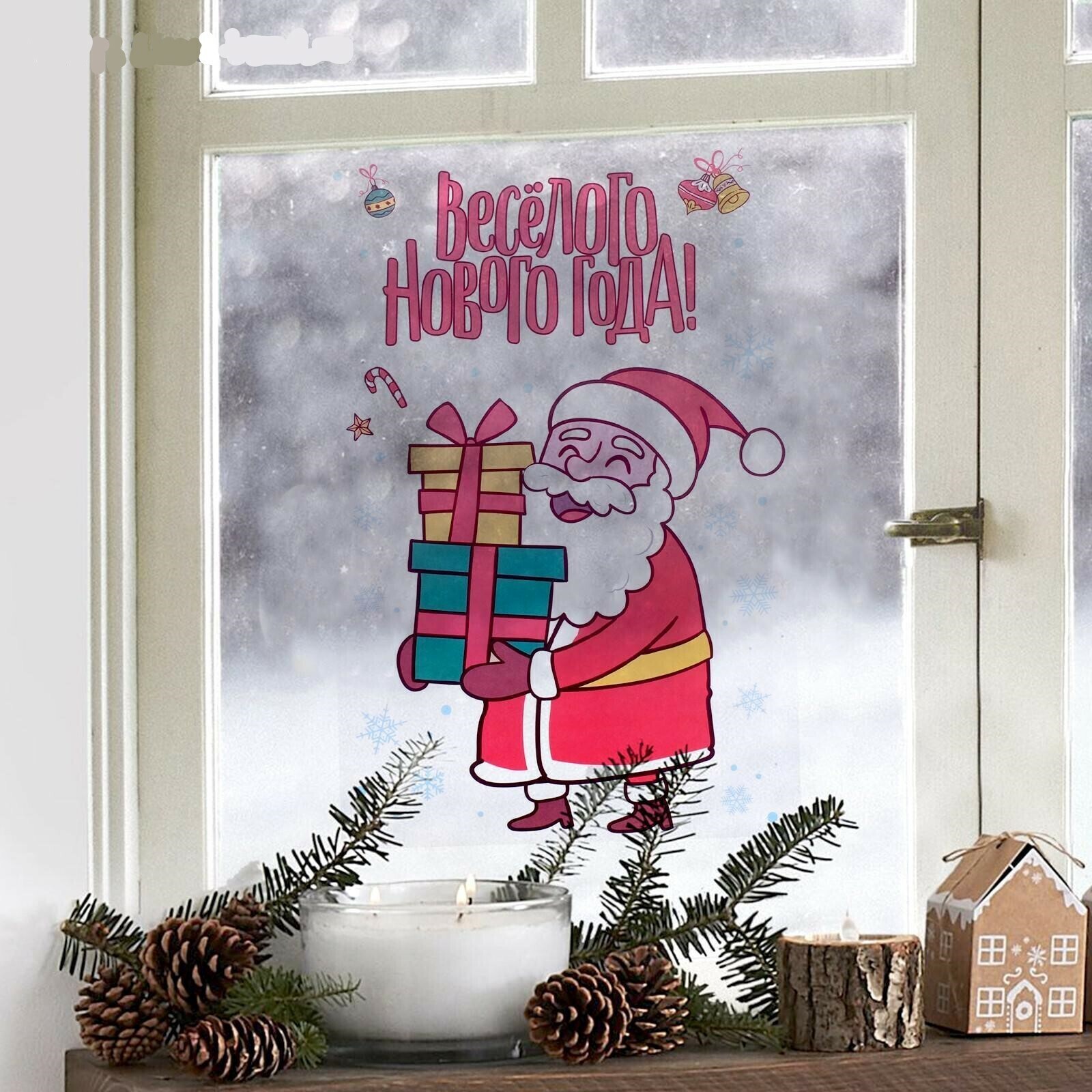 !09 Наклейки для окон "Веселого Нового Года!" 20*34 см , многоразовые