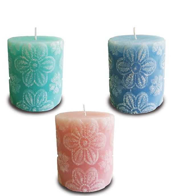 !09 НАБОР 2 ШТУКИ - Свеча- цилиндр декоративная "Цветочное кружево" 8 см. цвет микс