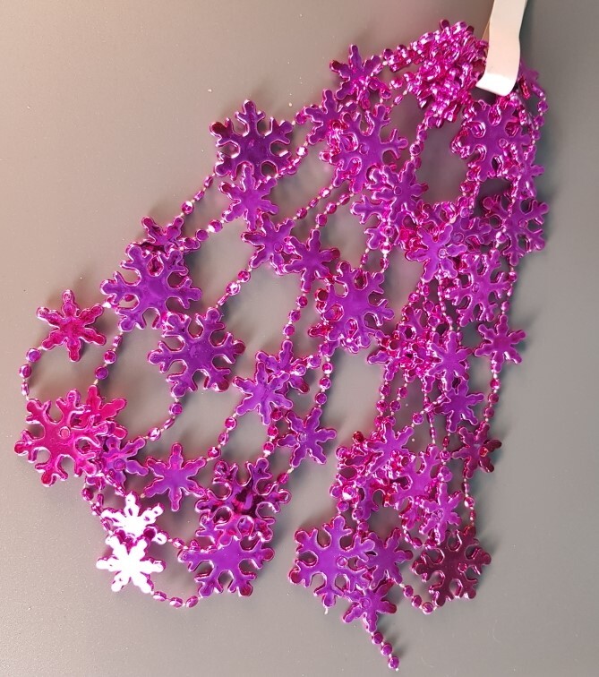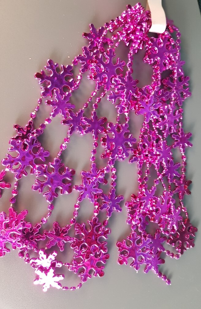 !09 НАБОР 3 ШТУКИ - ЕЛОЧНОЕ УКРАШЕНИЕ MARKO FERENZO - БУСЫ "СНЕЖИНКИ" 2,7 М., ЦВЕТ ФУКСИЯ