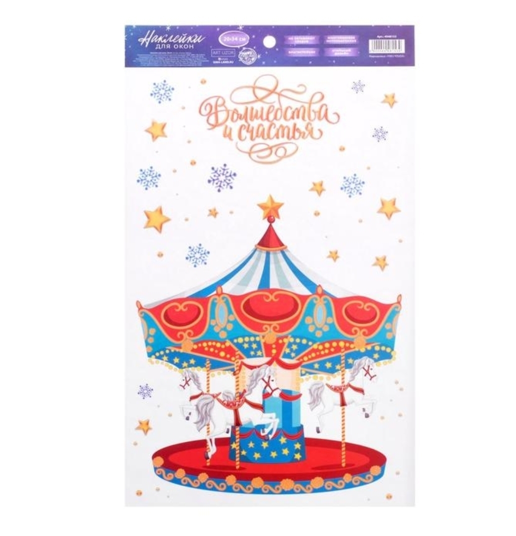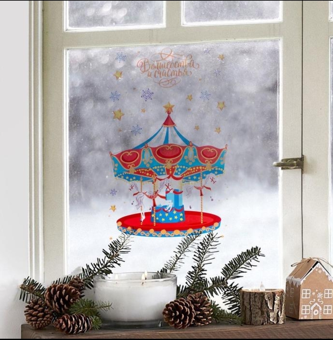 !09 НАБОР 2 ШТУКИ - Наклейки для окон "Карусель" 20*34 см., многоразовые