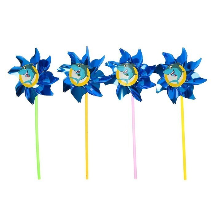 !09 НАБОР 7 ШТУК - Ветерок с фольгой «Акула», 36 см