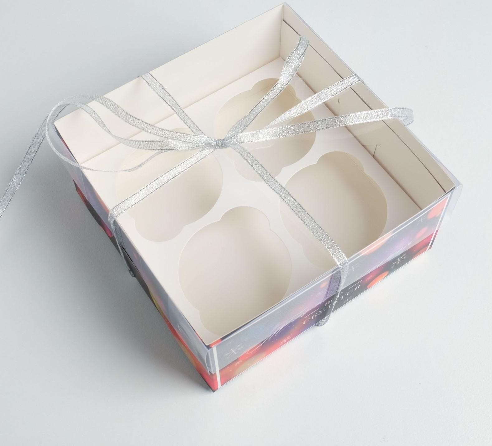 !09 НАБОР 4 ШТУКИ - Коробка для капкейка на 4 ячейки «Все сбудется», 16 х 16 х 7,5 см.