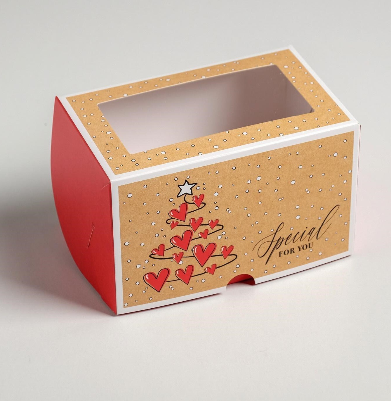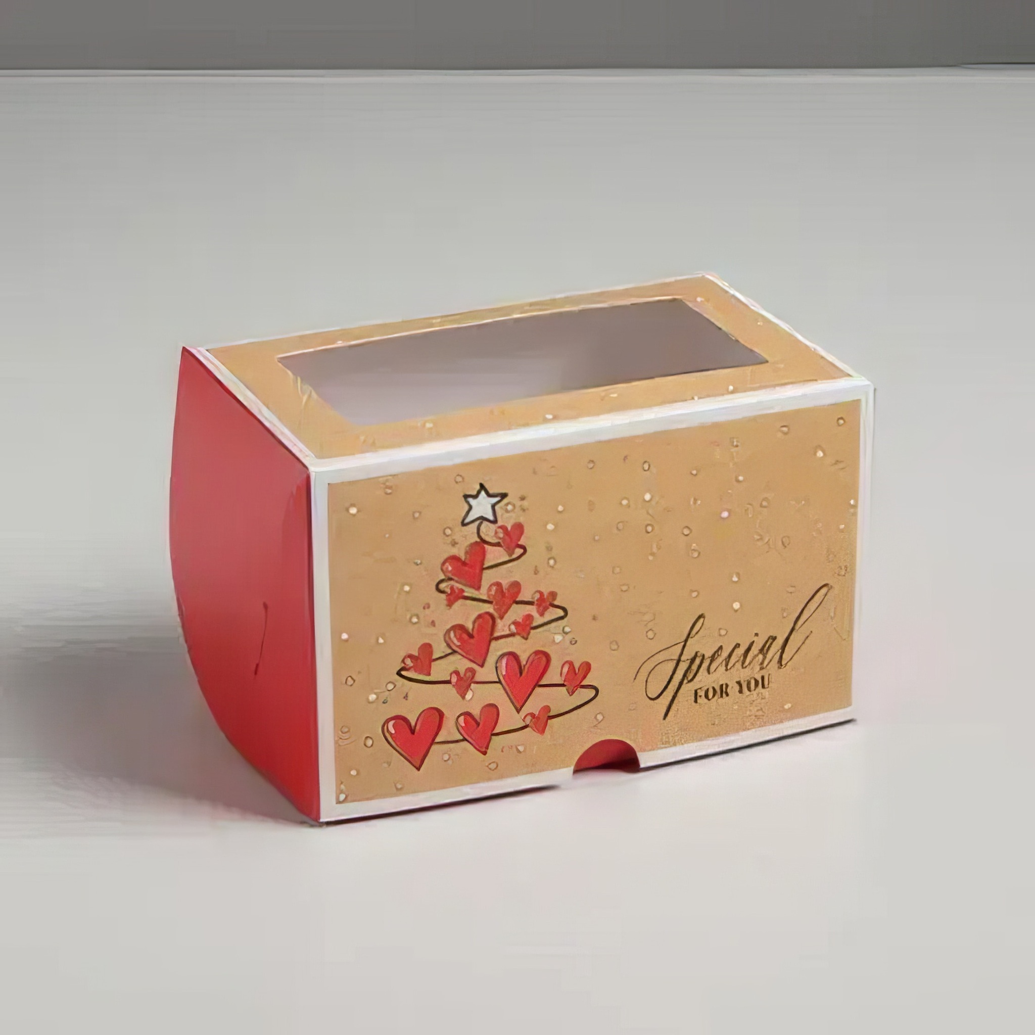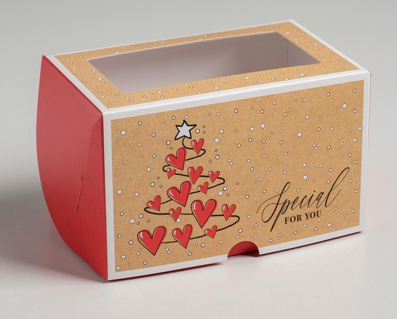 !09 НАБОР 5 ШТУК - Коробка для капкейков (на 2 шт.) «Для любимых» 10 х 16 х 10 см.
