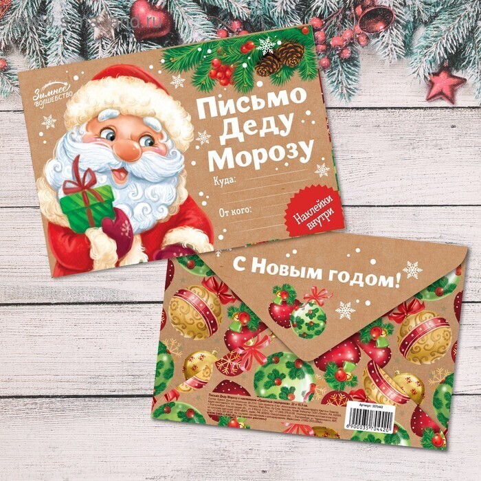 !09 Набор 4 штуки: Письмо Деду Морозу с наклейками «Приятных сюрпризов», 22 х 15,3 см