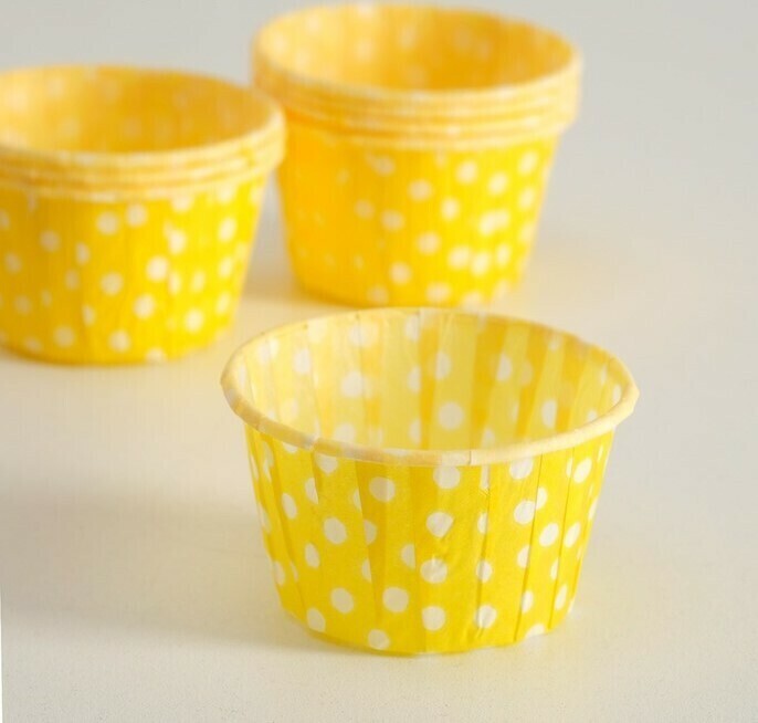 !09 НАБОР ИЗ 40 ШТУК - Форма для выпечки "Маффин", желтый в белый горох, 5 х 4 см.