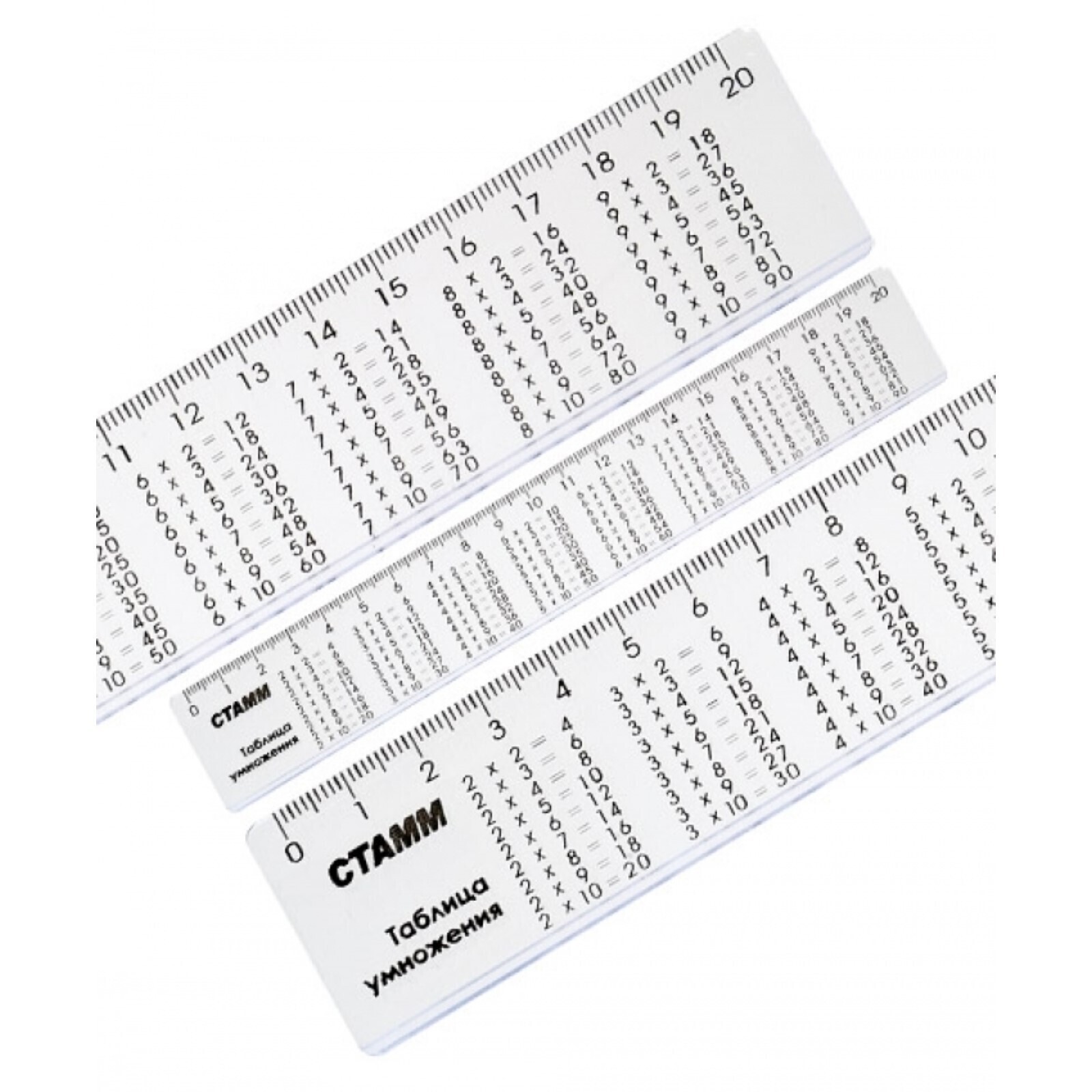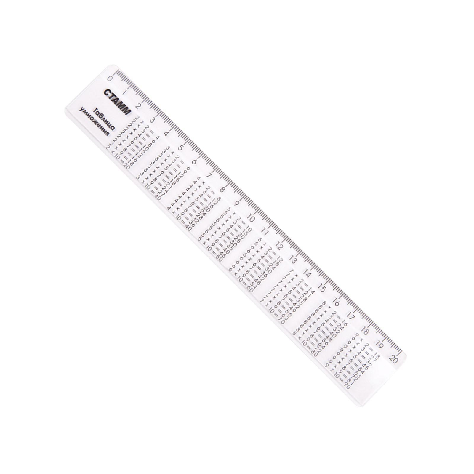 !09 Набор 6 штук - Линейка справочная 20 см Стамм "Таблица умножения", прозрачная, бесцветная