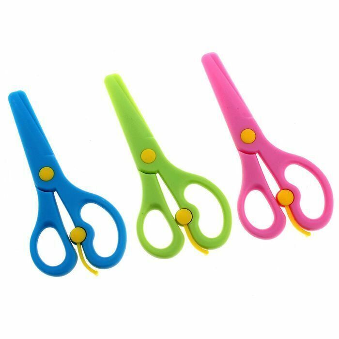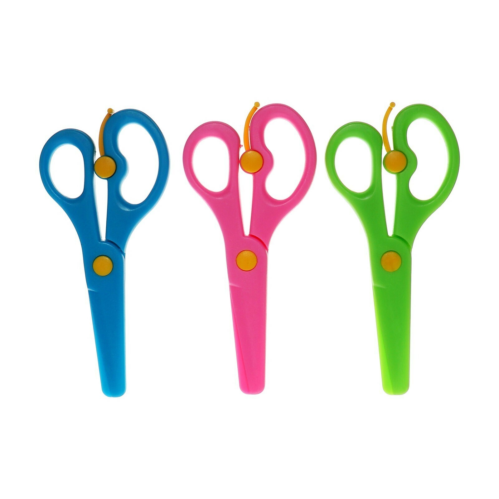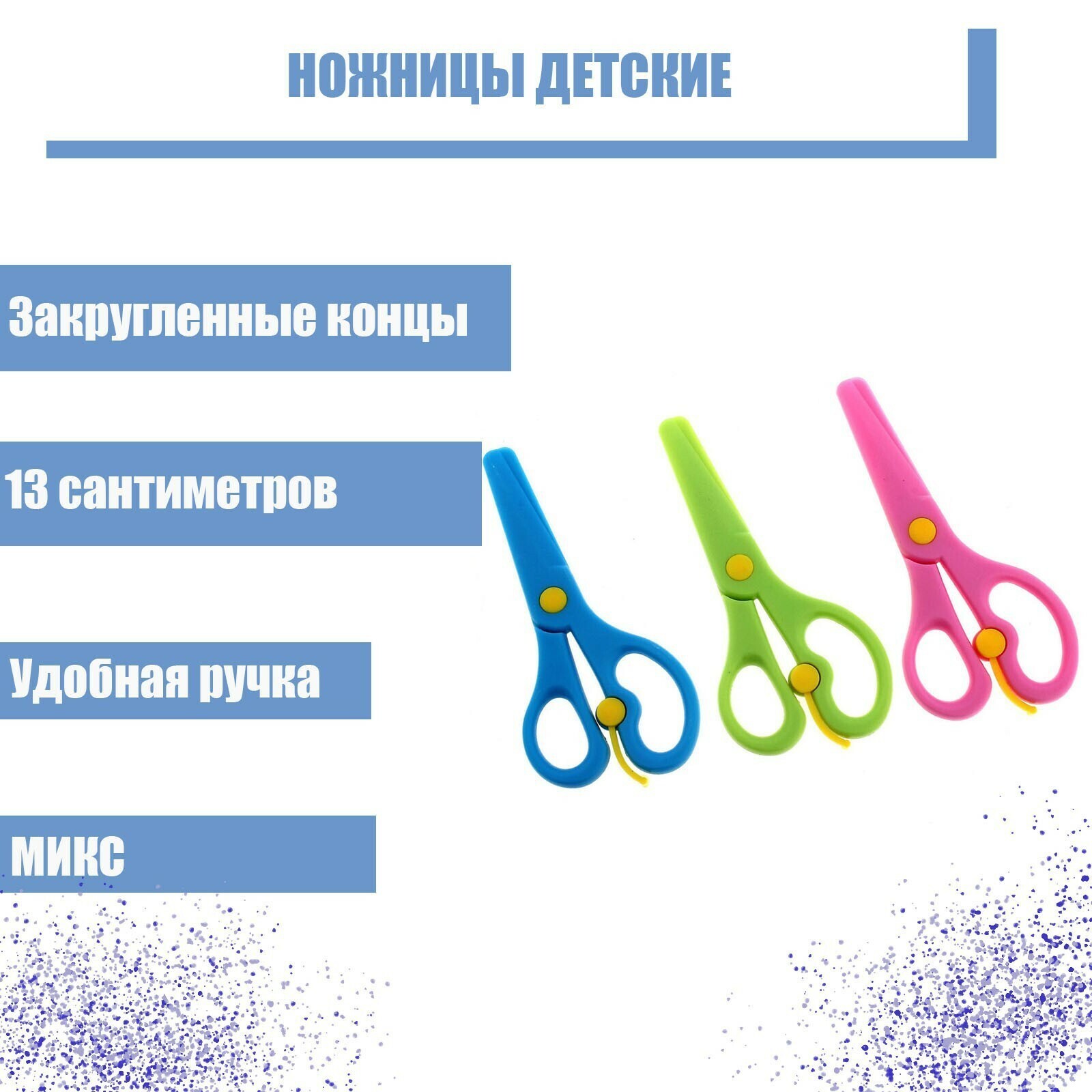!09 НАБОР 8 ШТУК - Ножницы детские 13 см, пластиковые, фиксатор, закруглённые концы, корпус МИКС