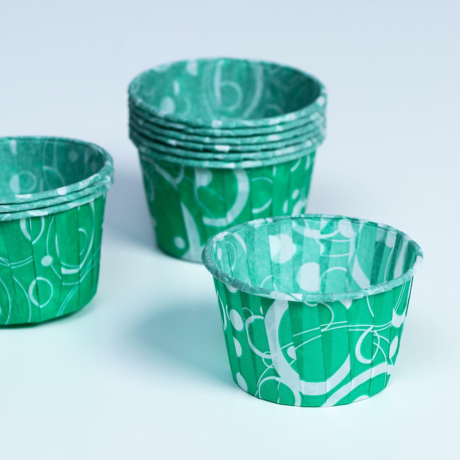 !09 НАБОР ИЗ 50 ШТУК - Форма бумажная "Маффин", зелёный с белыми кольцами, 5 х 4 см.