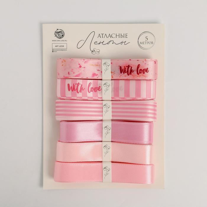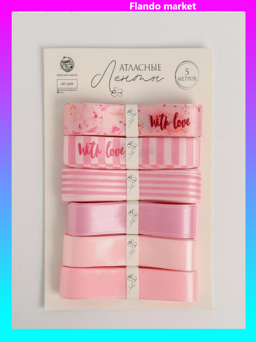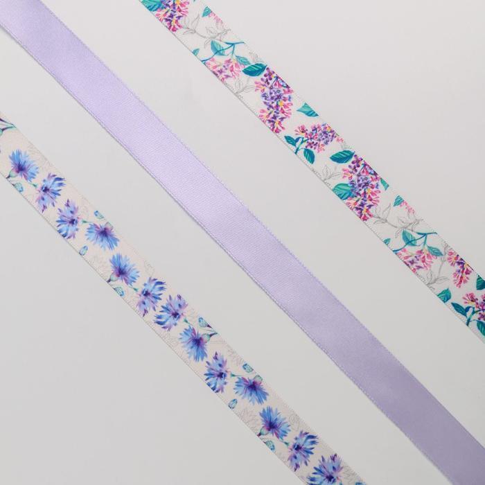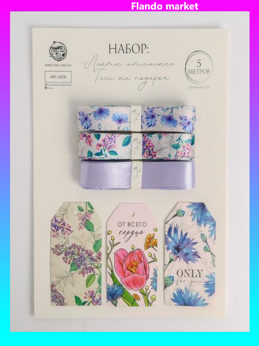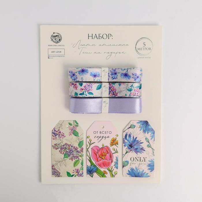 !09 Комплект для упаковки подарков: Набор атласных лент «Сирень» 14 х 19 см, 3 вида по 5 метров + 3 шильдика + Набор атласных лент «Фиалка» 14 х 19 см, 6 видов по 5 метров