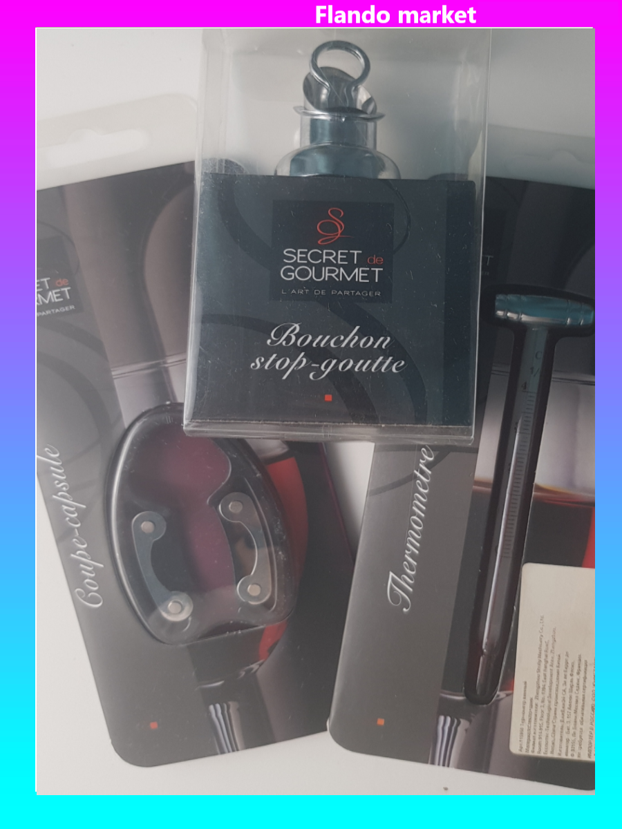 !09 Набор барных аксессуаров 3 предмета:Термометр винный + Ключ для открывания бутылок+Пробка для бутылок