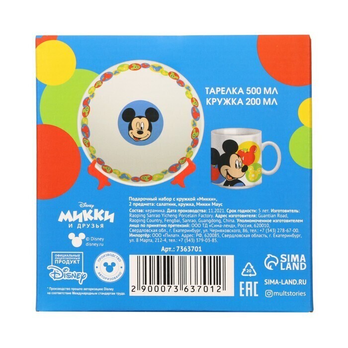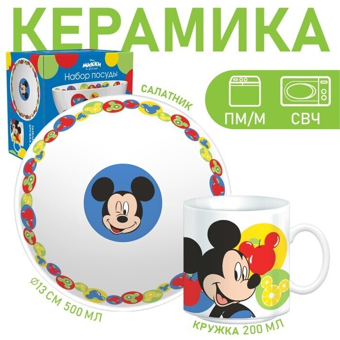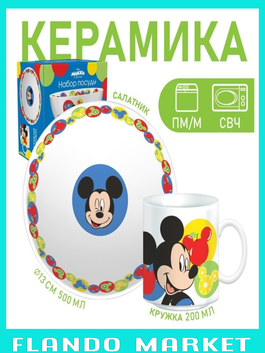 !09 Набор детской посуды "Микки" 2 предмета: салатник, кружка, Микки Маус и его друзья