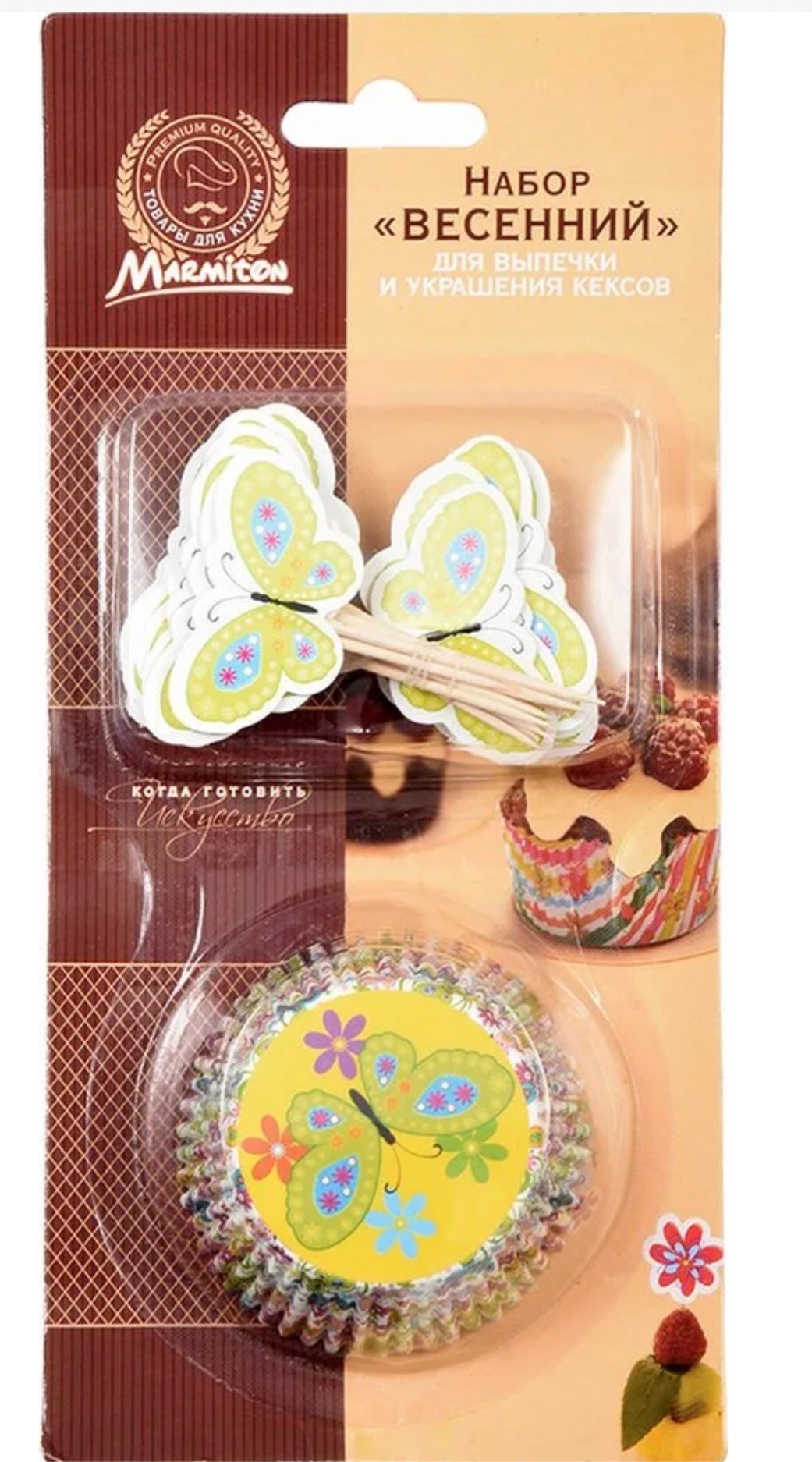 !09 Набор для выпечки и украшения кексов Marmiton "Весенний", 48 предметов(24 формы+24 шпажки)