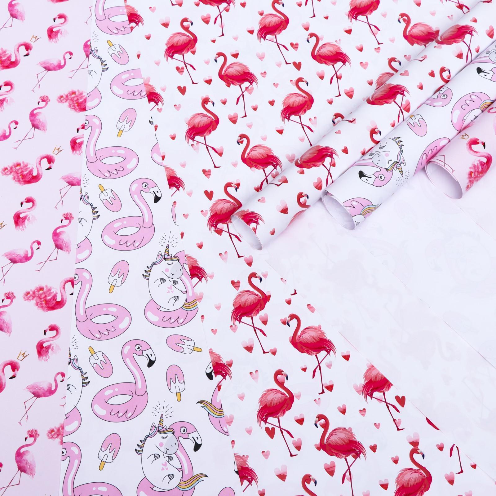 !09 Набор глянцевой бумаги (3 листа) с печатью "Фламинго", 0,7 х 1 м.