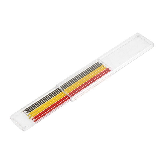 !09 Набор грифелей 12 штук для карандаша ТУНДРА, цветные (черные, красные, желтые), 120 мм, 2 упаковку