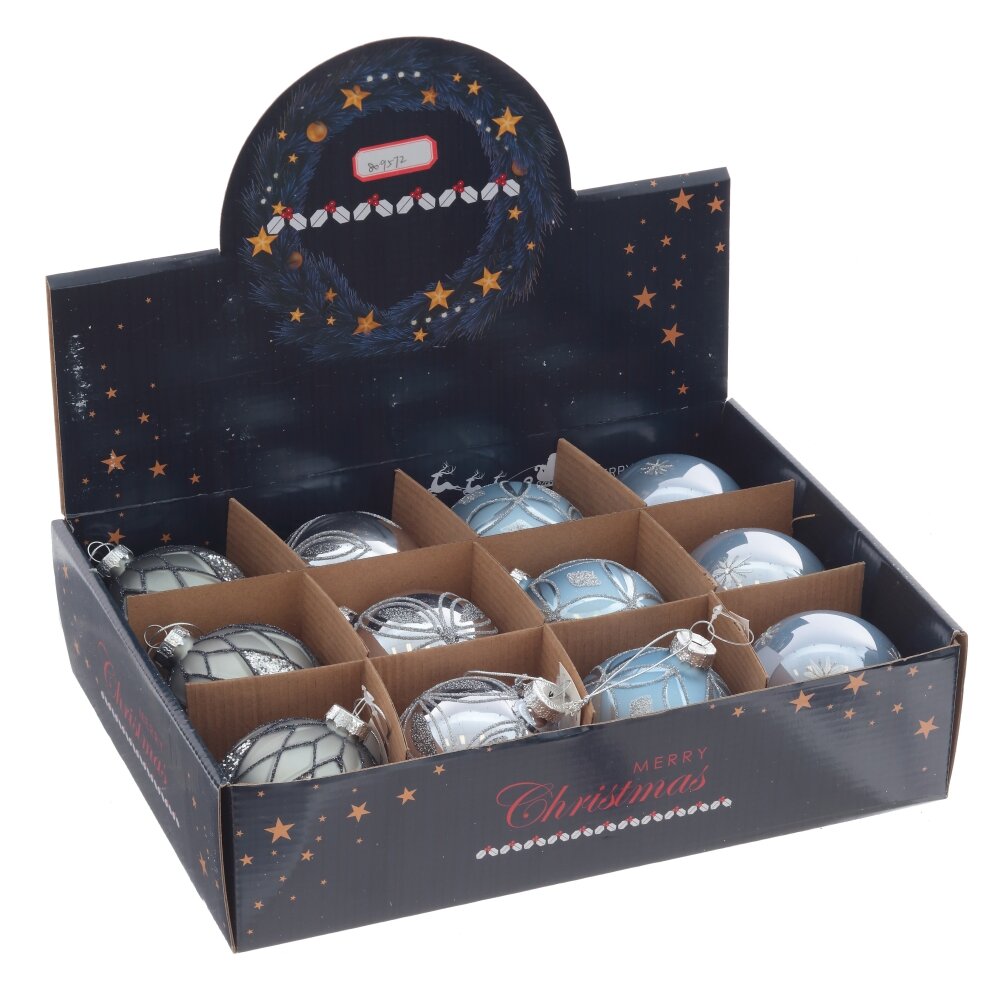 Набор из 12шт Украшение новогоднее "Шар", D 8 см, L34 W25 H8 см