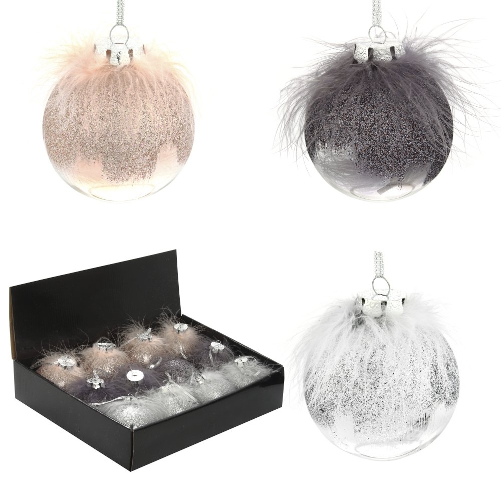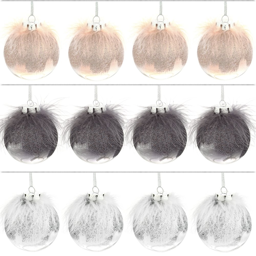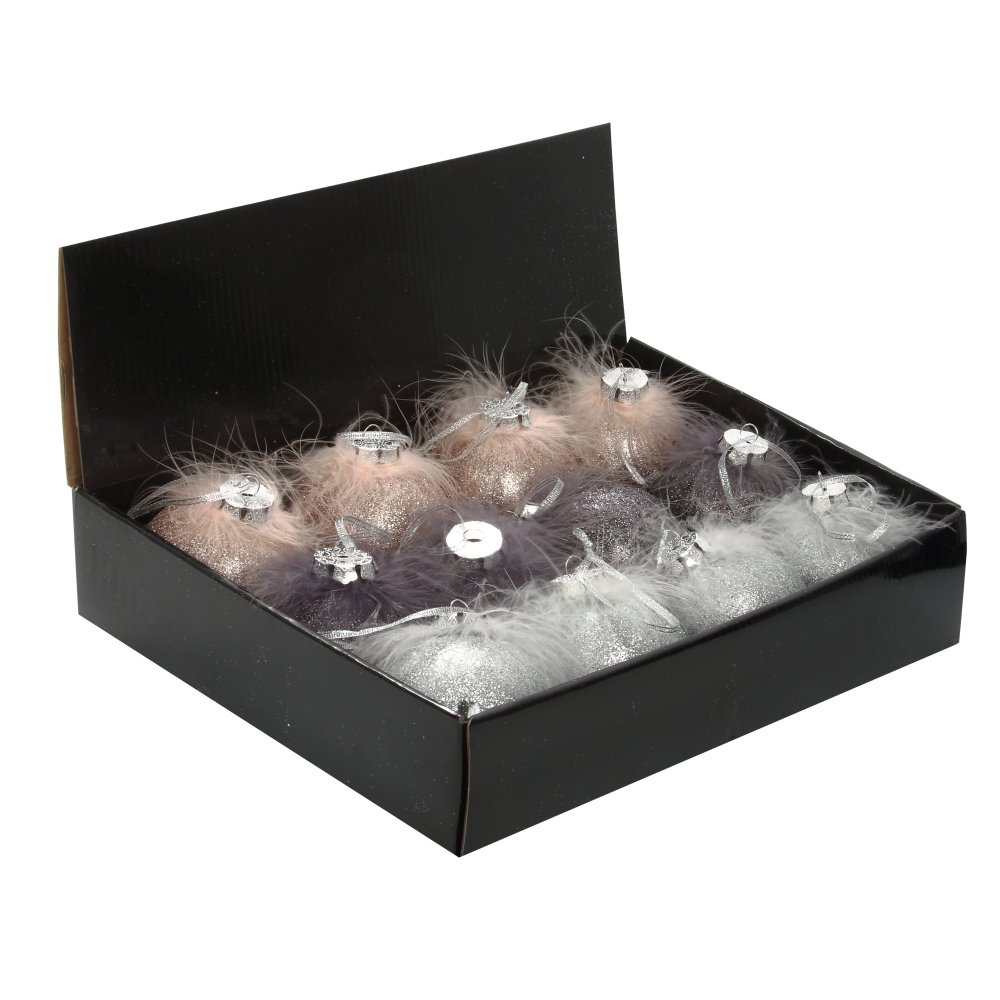 Набор из 12шт, Украшение новогоднее Шар "Перышко страуса", D 8 см, L35 W27 H9 см