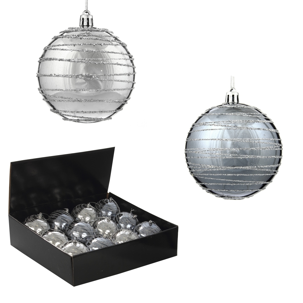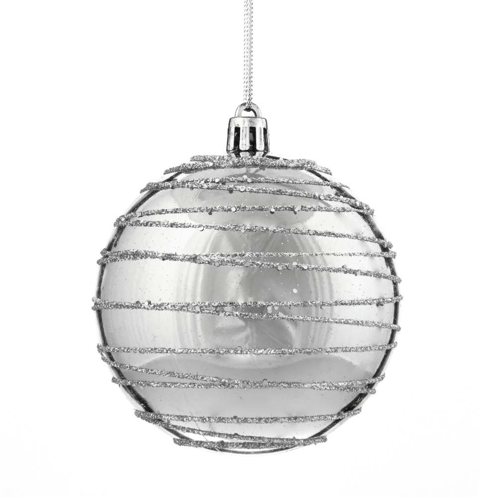 Набор из 12шт, Украшение новогоднее Шар "Спираль серебристая", D10 см, L44 W33 H11 см