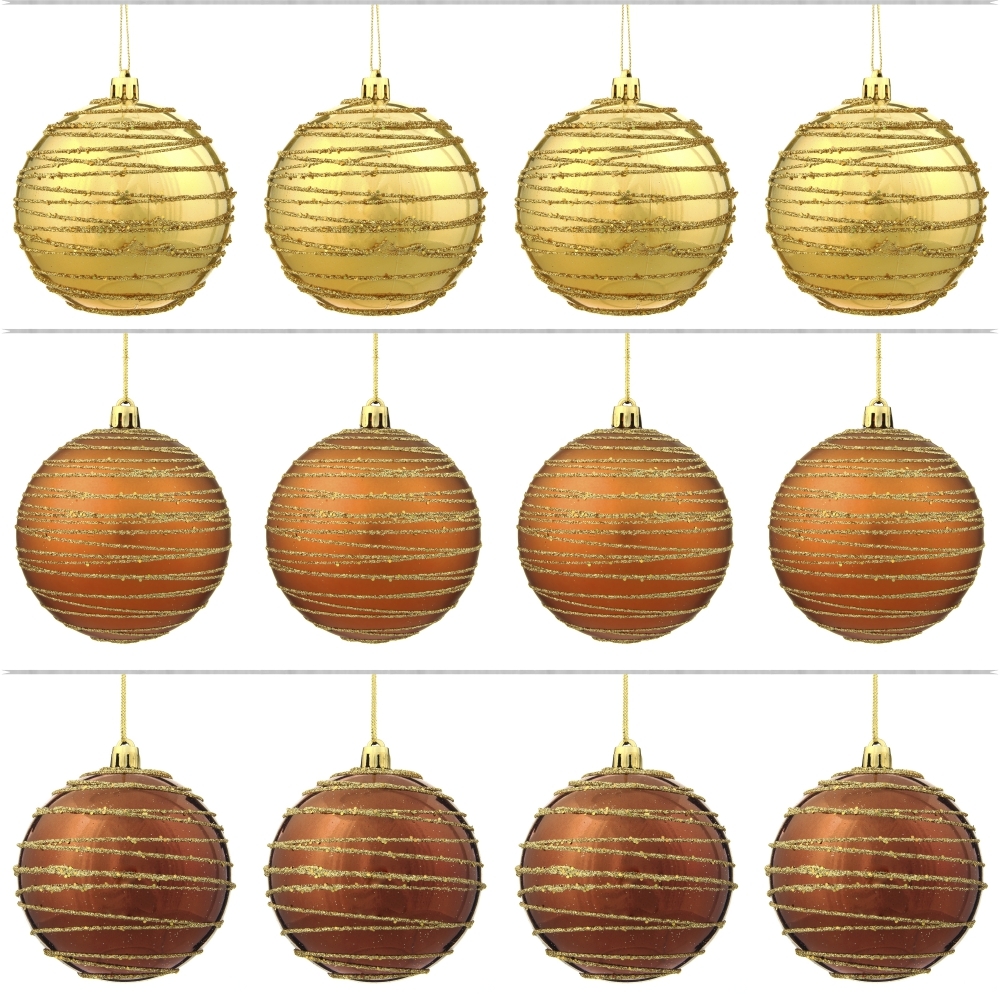 Набор из 12шт, Украшение новогоднее Шар "Спираль золотистая", D8 см, L35 W28 H21 см