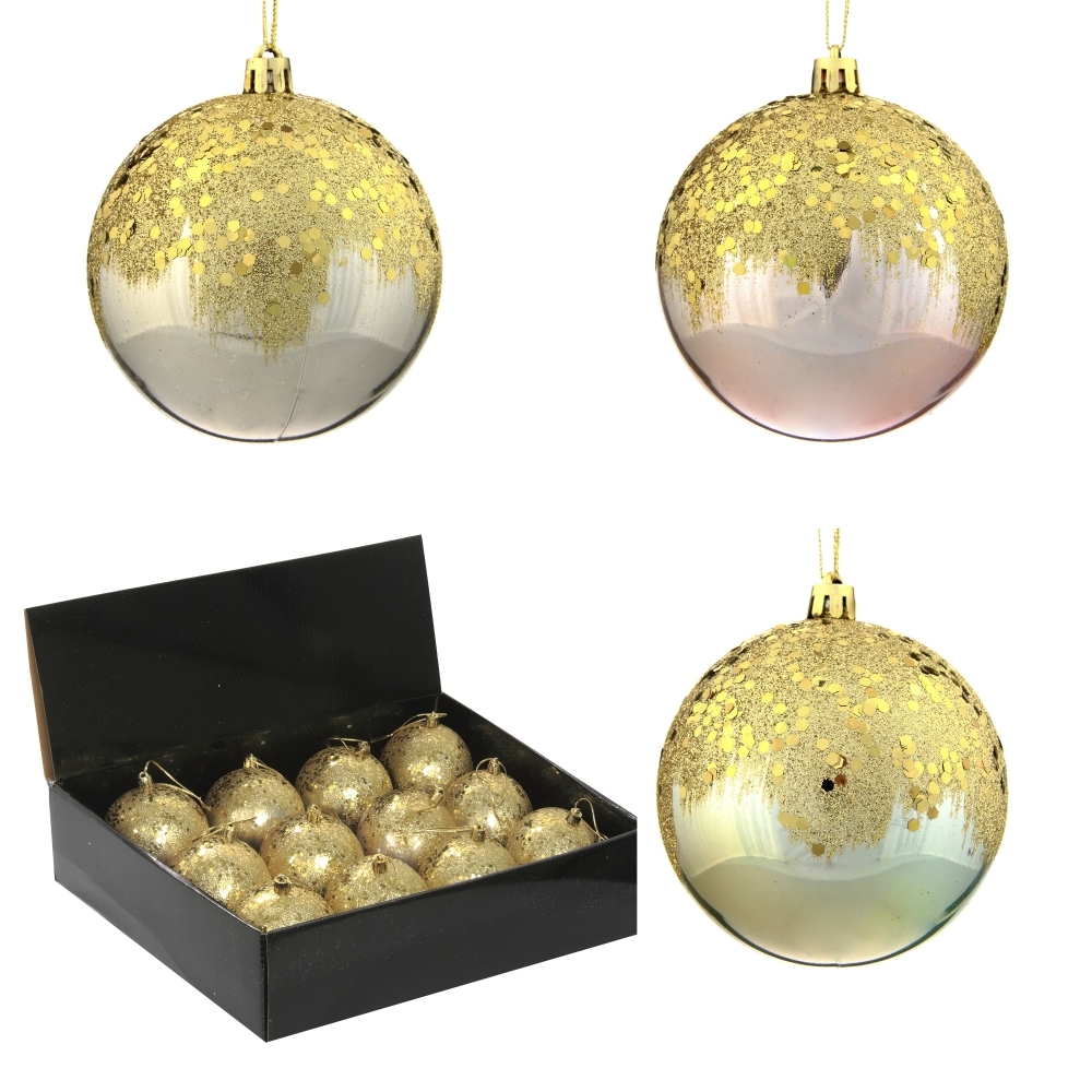 Набор из 12шт Украшение новогоднее Шар "Золотое напыление", D8 см, L35 W27 H9 см