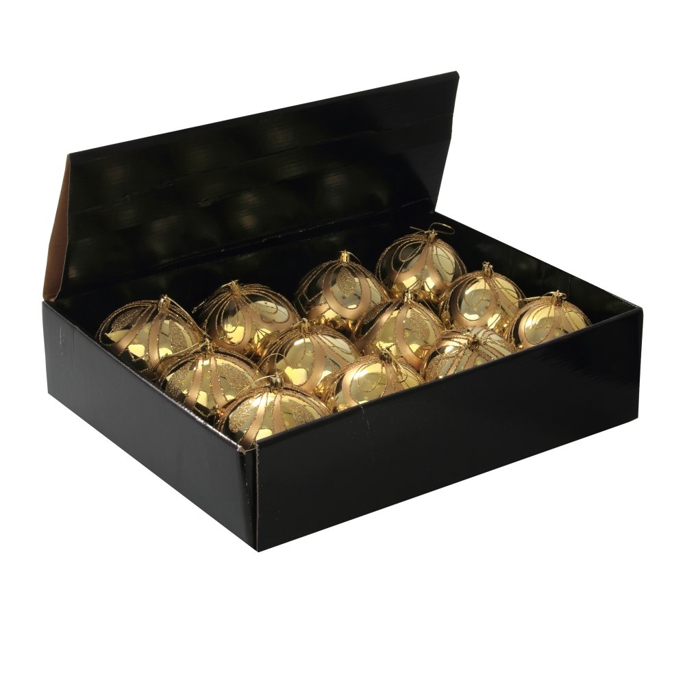 Набор из 12шт Украшение новогоднее Шар "Золотой вензель", D10 см, L43 W33 H10,5 см