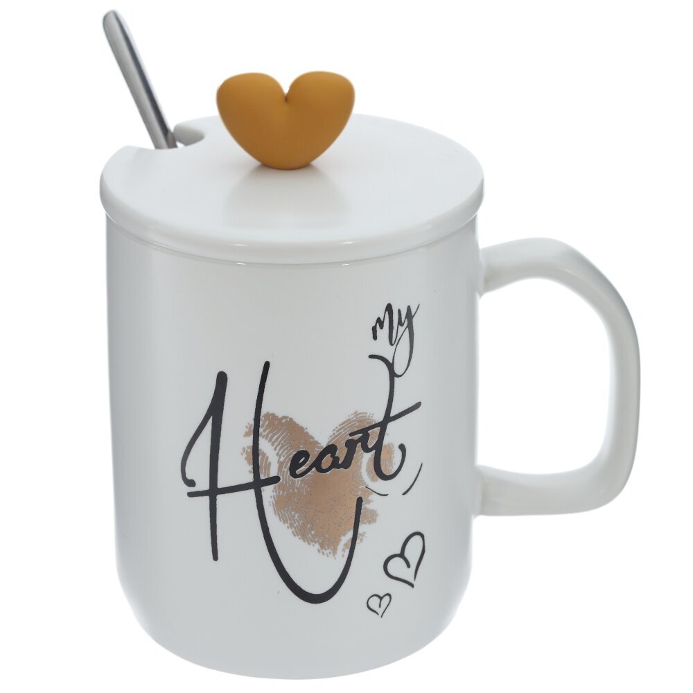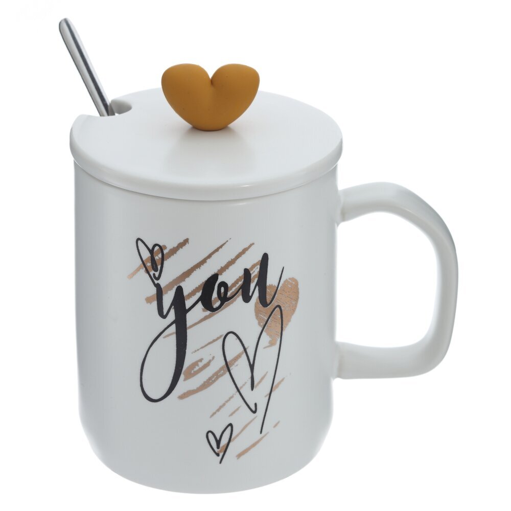 Кружка с крышкой и ложкой, 390 мл, L12,5 W9,5 H13 см
