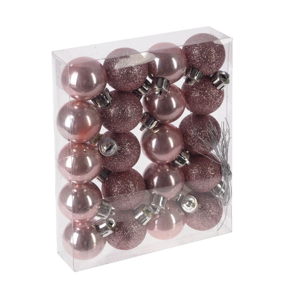 Набор из 20шт, Украшение новогоднее Шар "Снежок розовый", D3 см, L14,5 W12 H3 см
