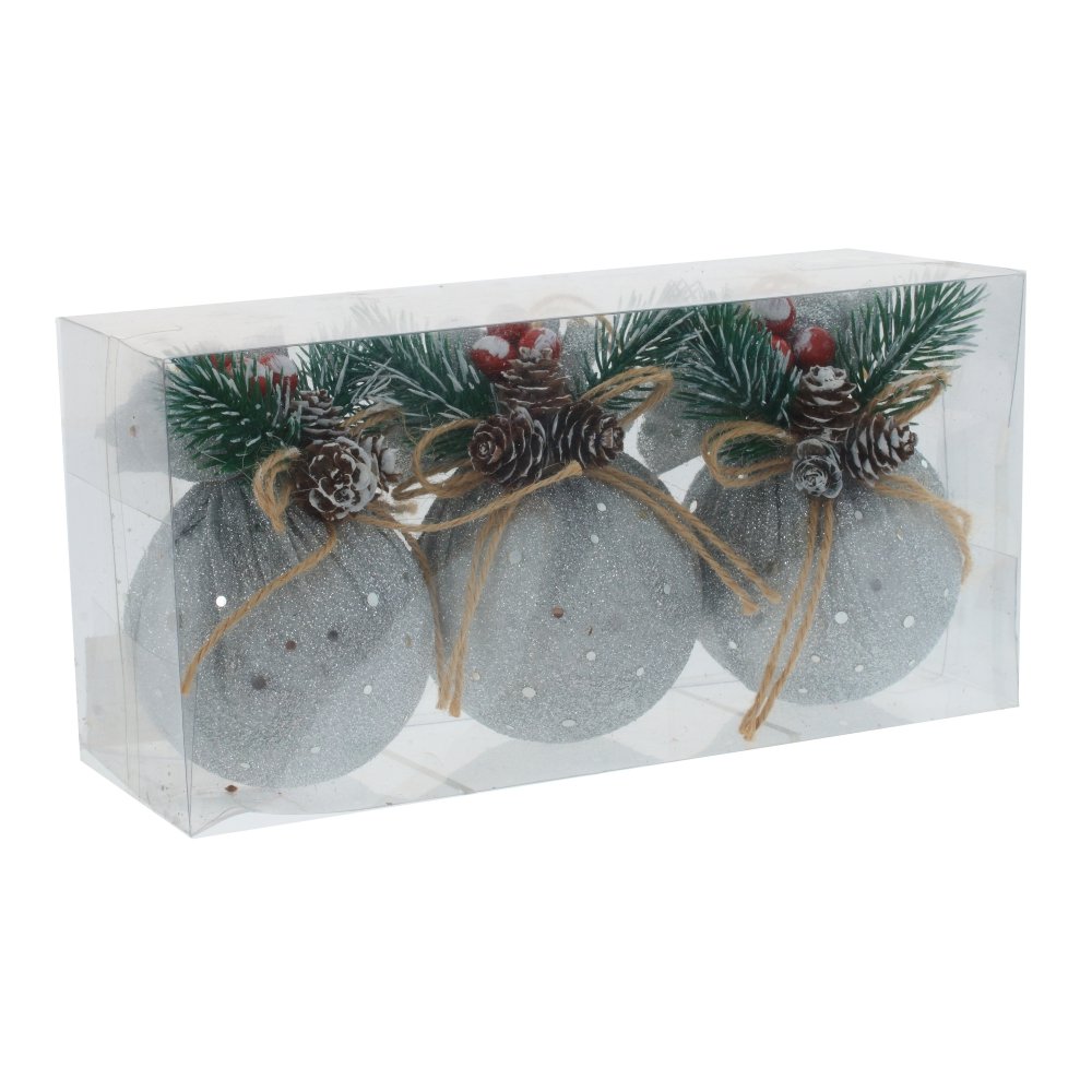 Набор из 3шт Украшение новогоднее "Шар", D8 см, L23 W8 H10 см