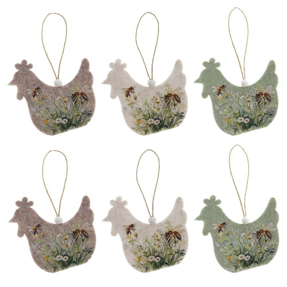 Набор из 6-ти изделий декоративных подвесных "Курица/Петух" (7,5*0,5*7,5), L25 W9 H1,5 см
