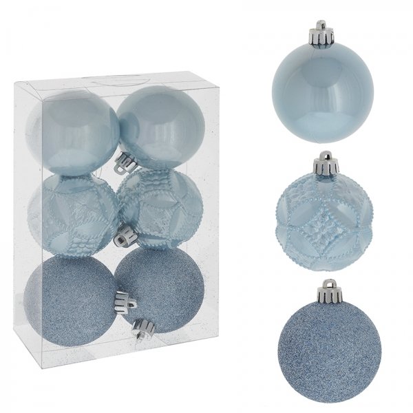 Набор из 6шт Украшение новогоднее Шар "Голубая сказка", D 6 см, L11,5 W6 H17 см