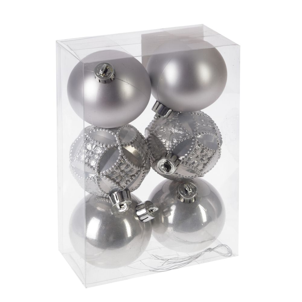 Набор из 6шт Украшение новогоднее Шар "Вензель серебристый", D 6 см, L11,5 W6 H17 см