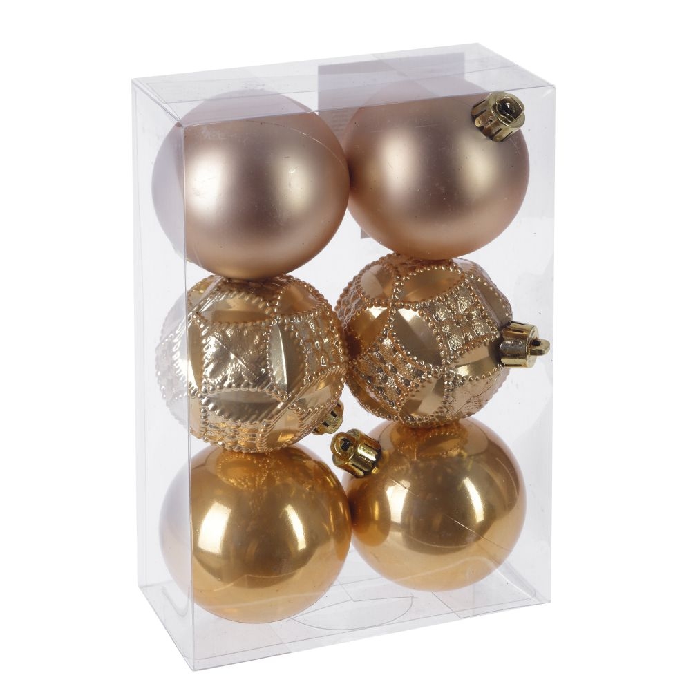 Набор из 6шт Украшение новогоднее Шар "Золотистый жемчуг", D6 см, L12 W6 H17,5 см