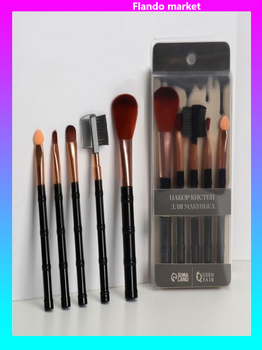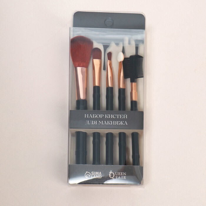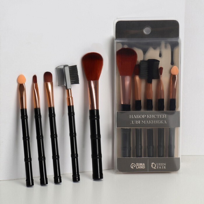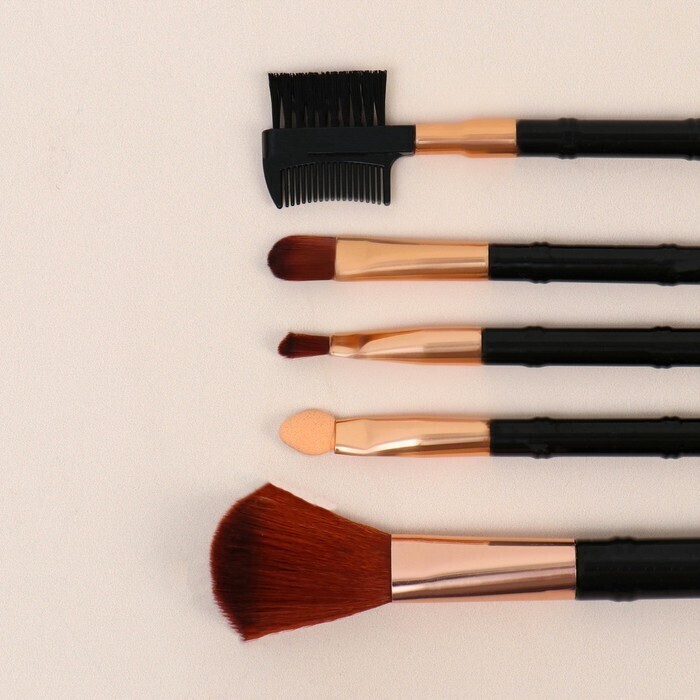 !09 Набор кистей для макияжа, 5 предметов, цвет чёрный/розовое золото