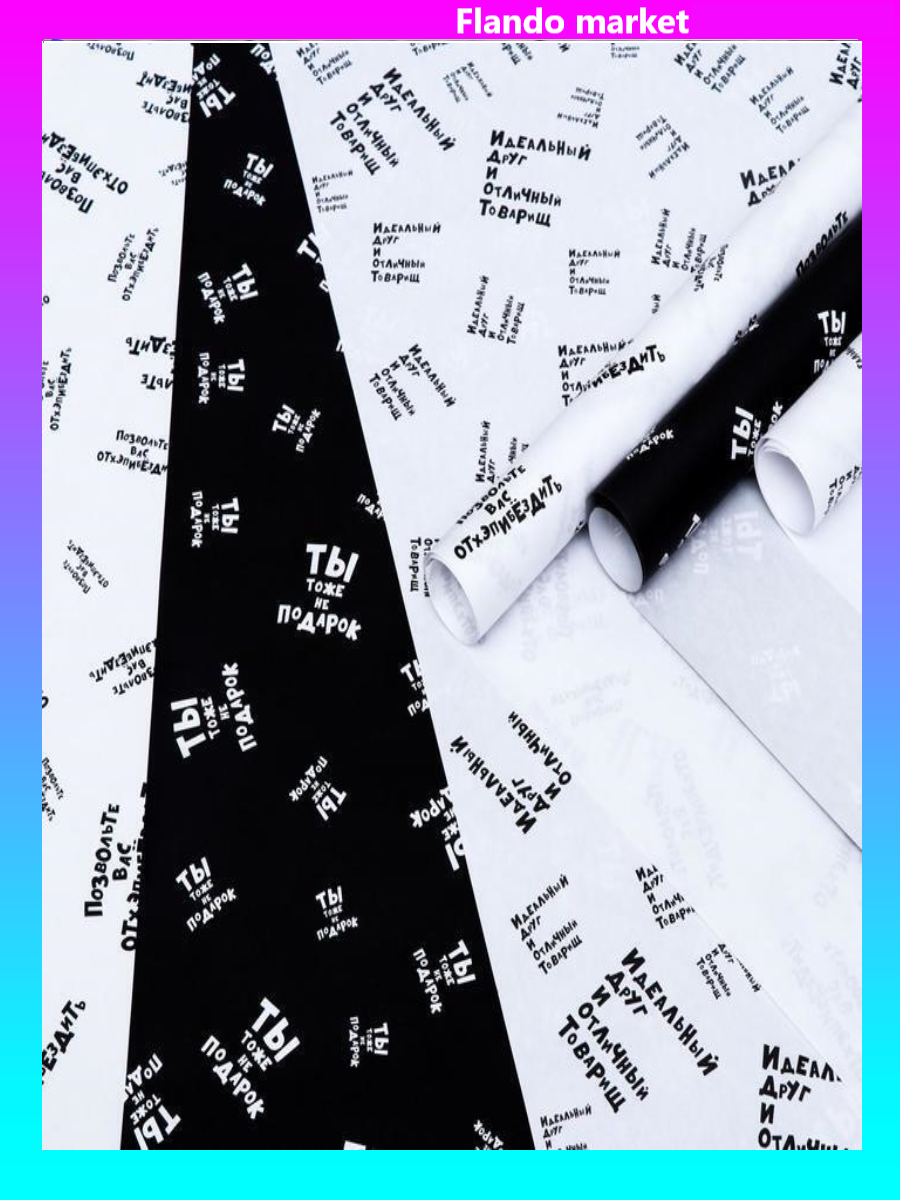 !09 Набор крафтовой бумаги 3 листа с печатью "ЧБ", 0,7 х 1 м.