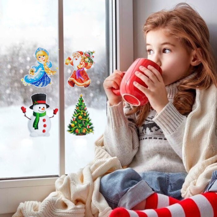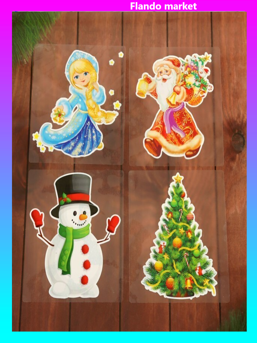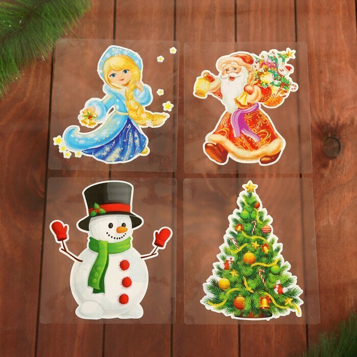 !09 Набор наклеек(3 набора) на окна "Новогодний" 4 наклейки в наборе, 14,3 x 16 см.
