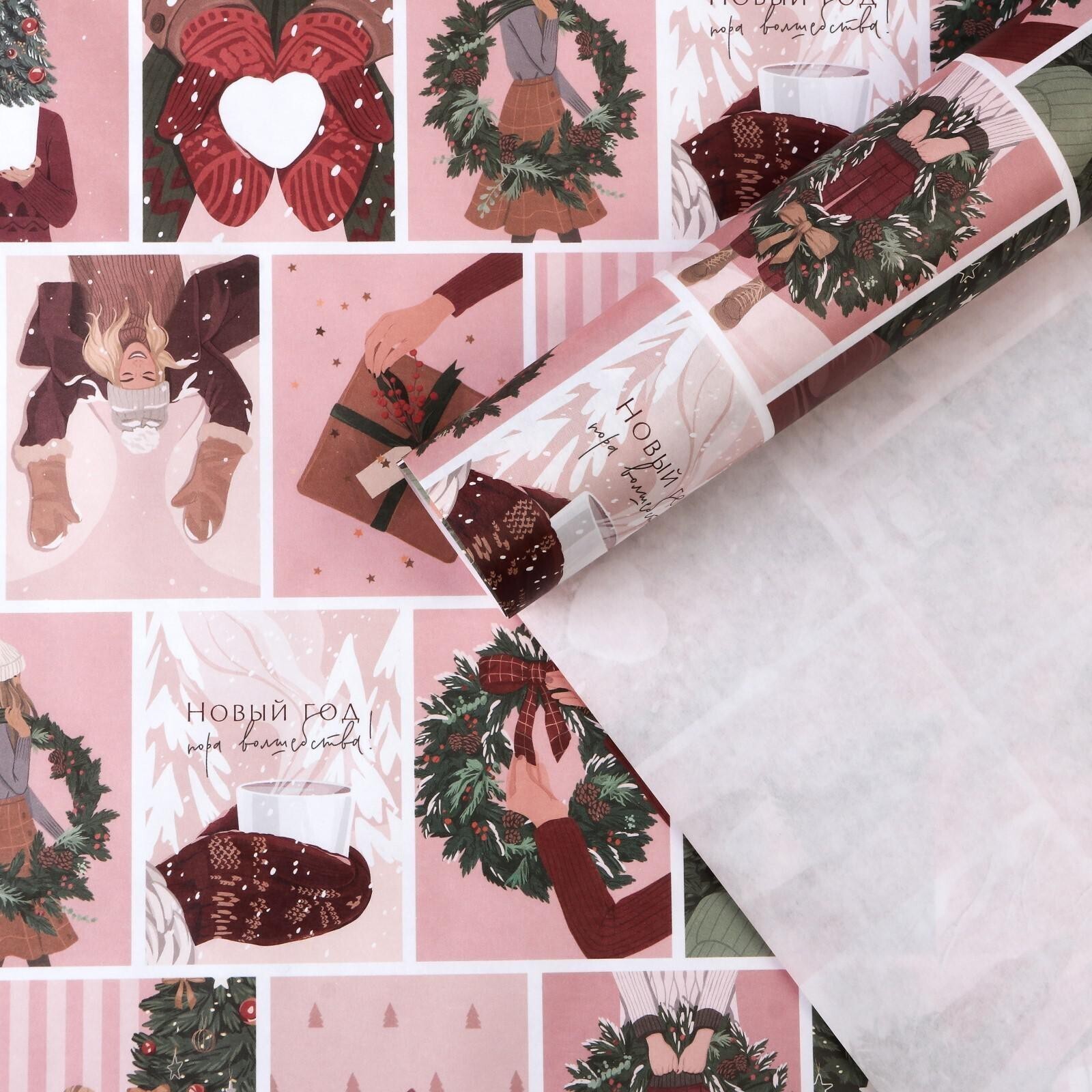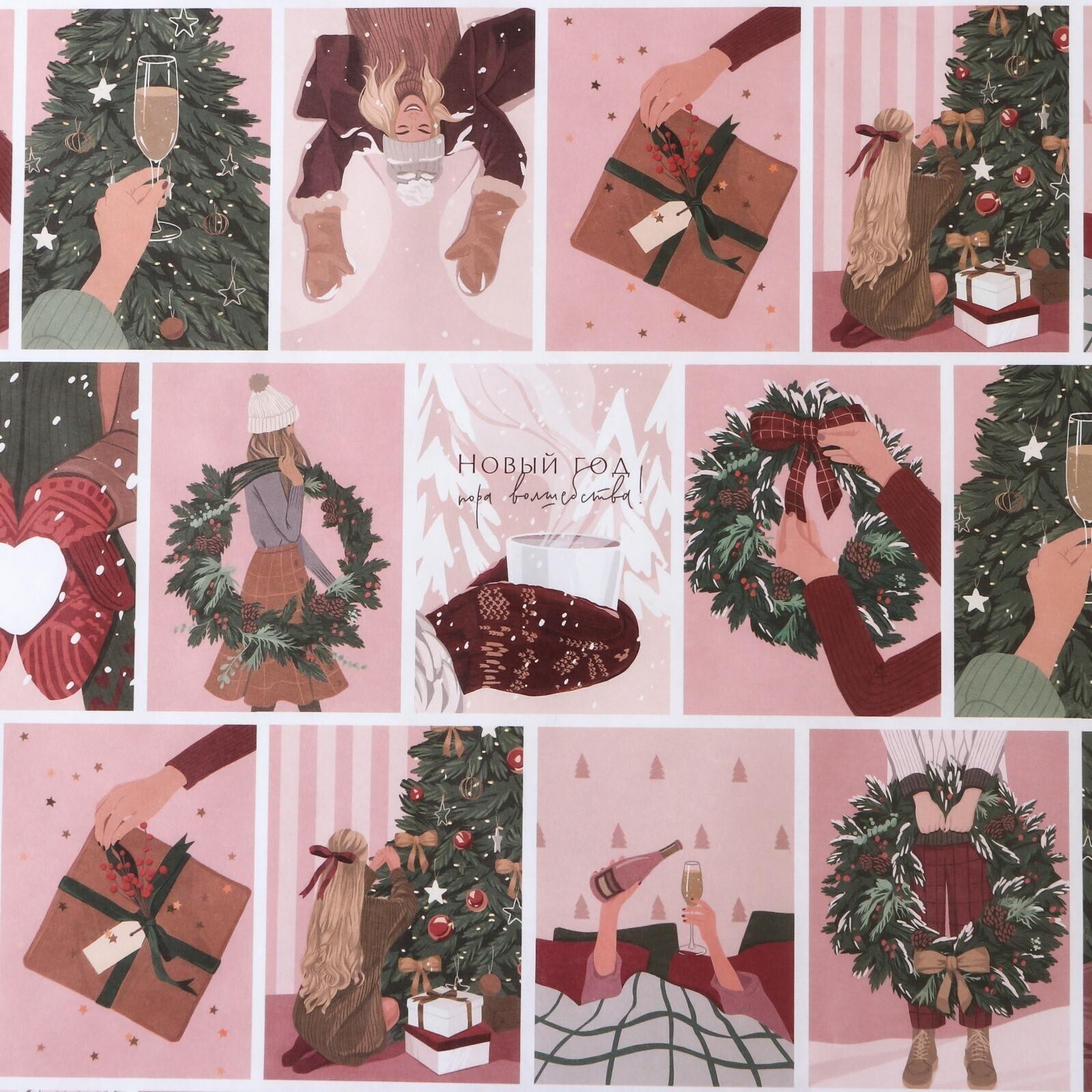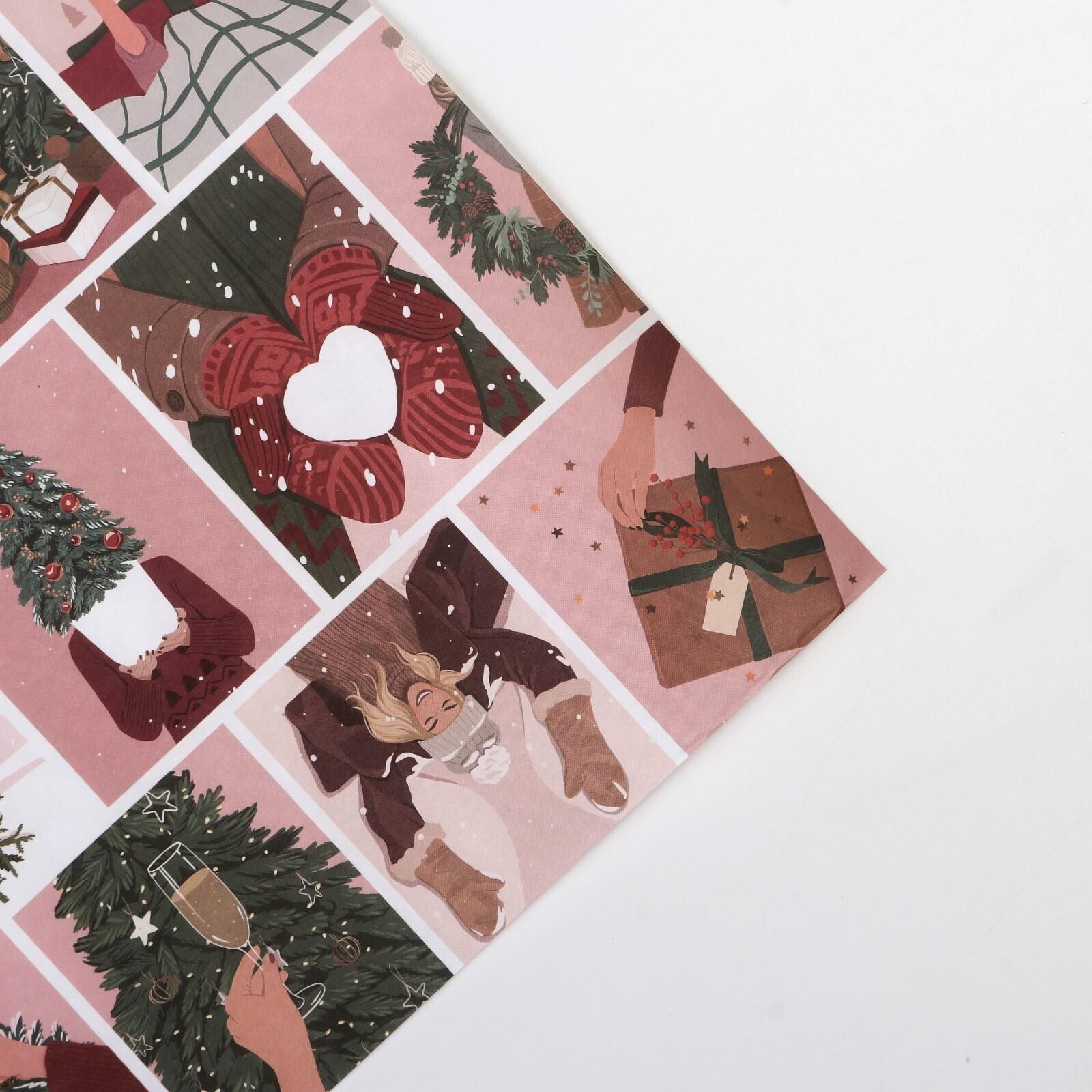 !09 Набор новогодней бумаги 3 листа крафт 50x70 см. дизайн микс